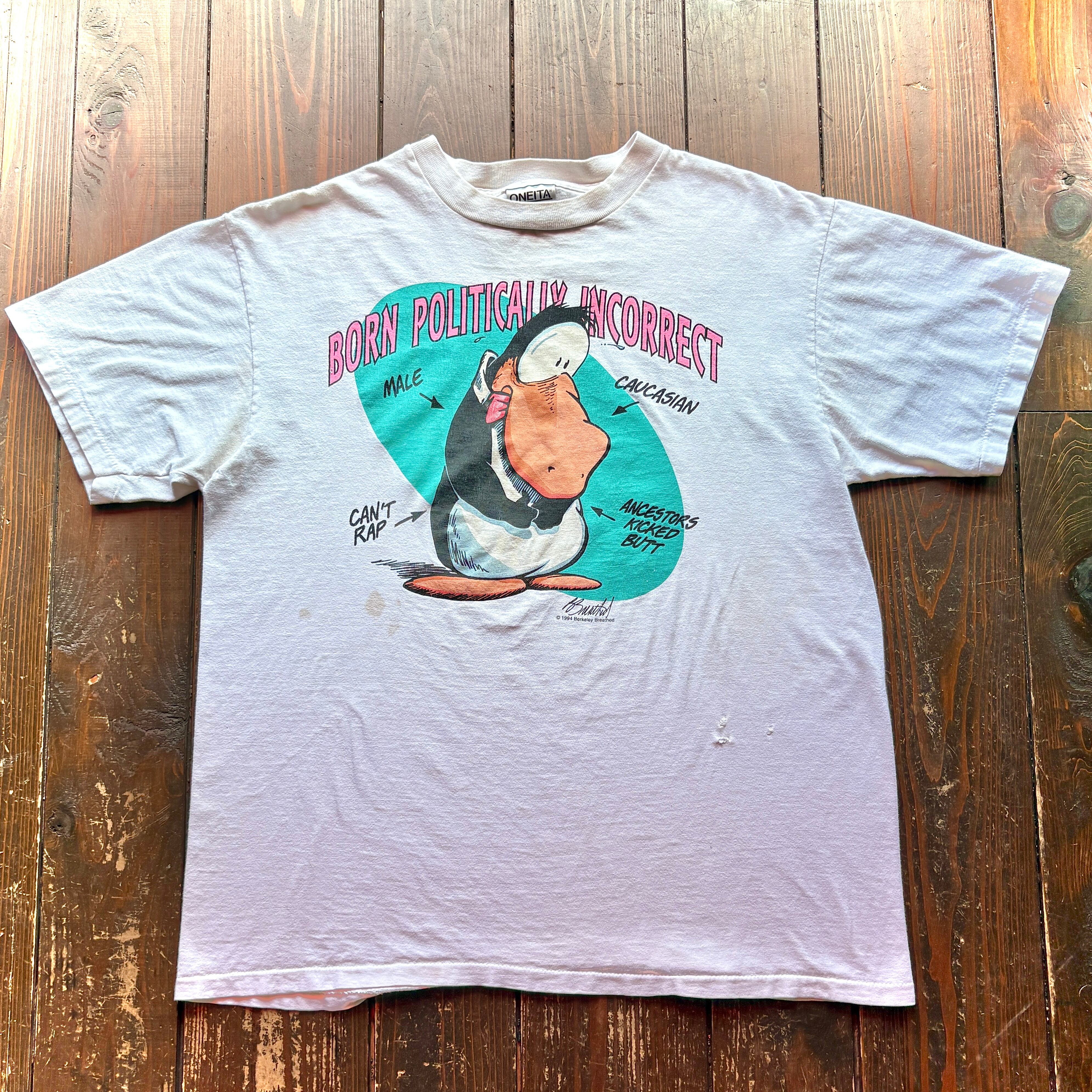 90s Berkeley Breathed 〝BORN POLITICALLY INCORRECT〟T-Shirt Body ONEITA / Size LARGE