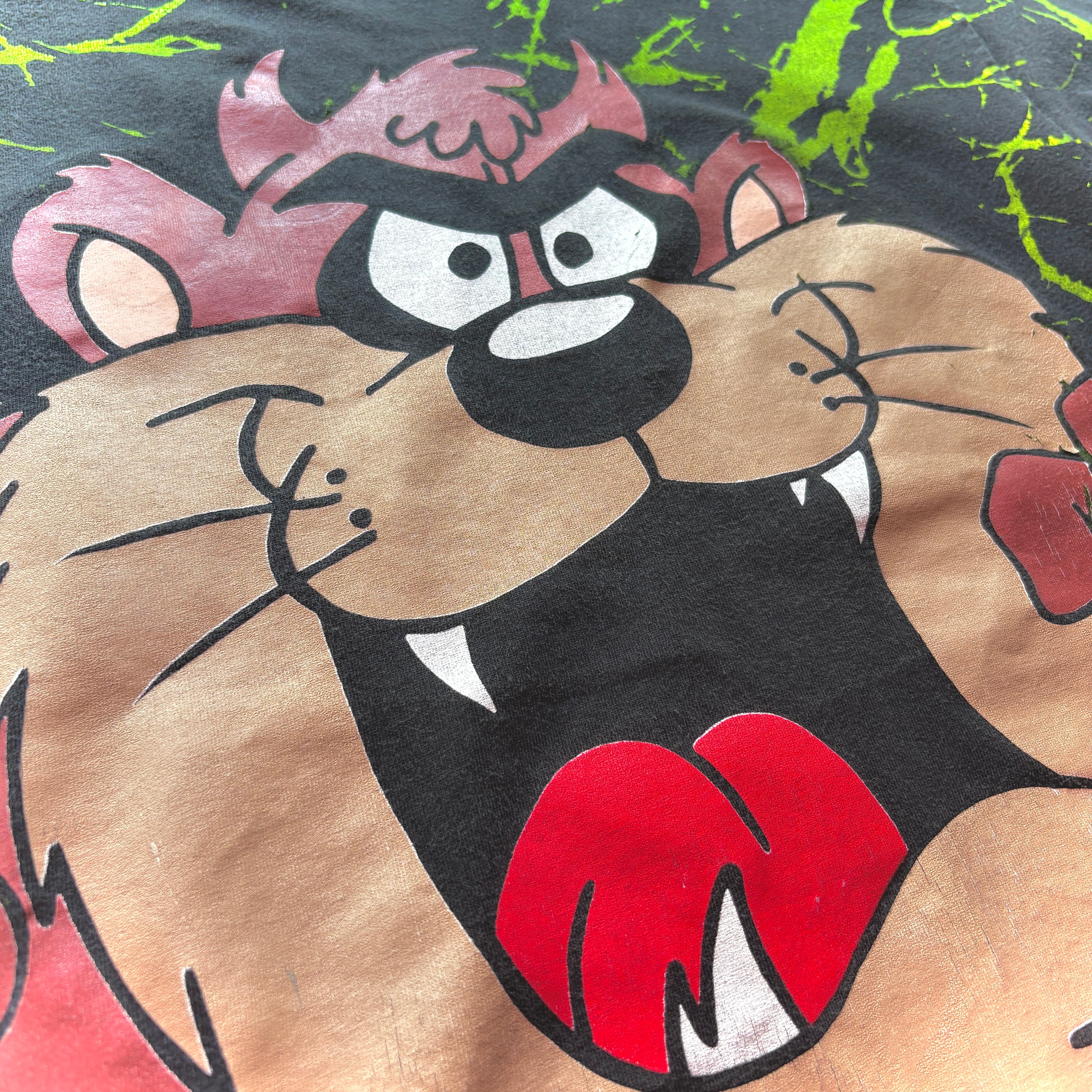 90s LOONIE TUNES 〝Tasmanian Devil〟 Splash Paint All Over Print T-Shirt Made in U.S.A / Size X-LARGE