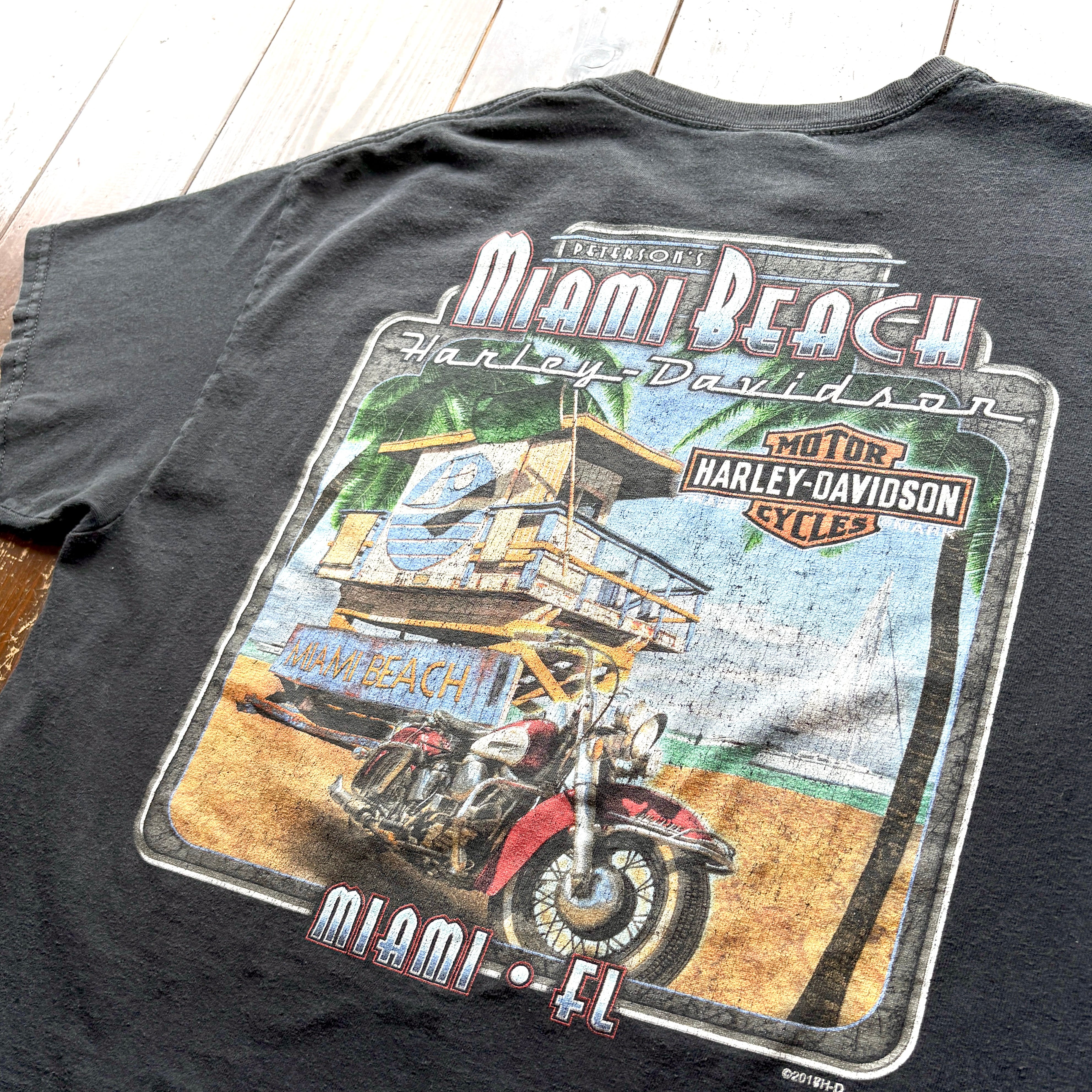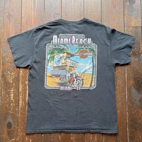 10s HARLEY-DAVIDSON 〝Florida Miami Beach〟Print T-Shirt / Size LARGE