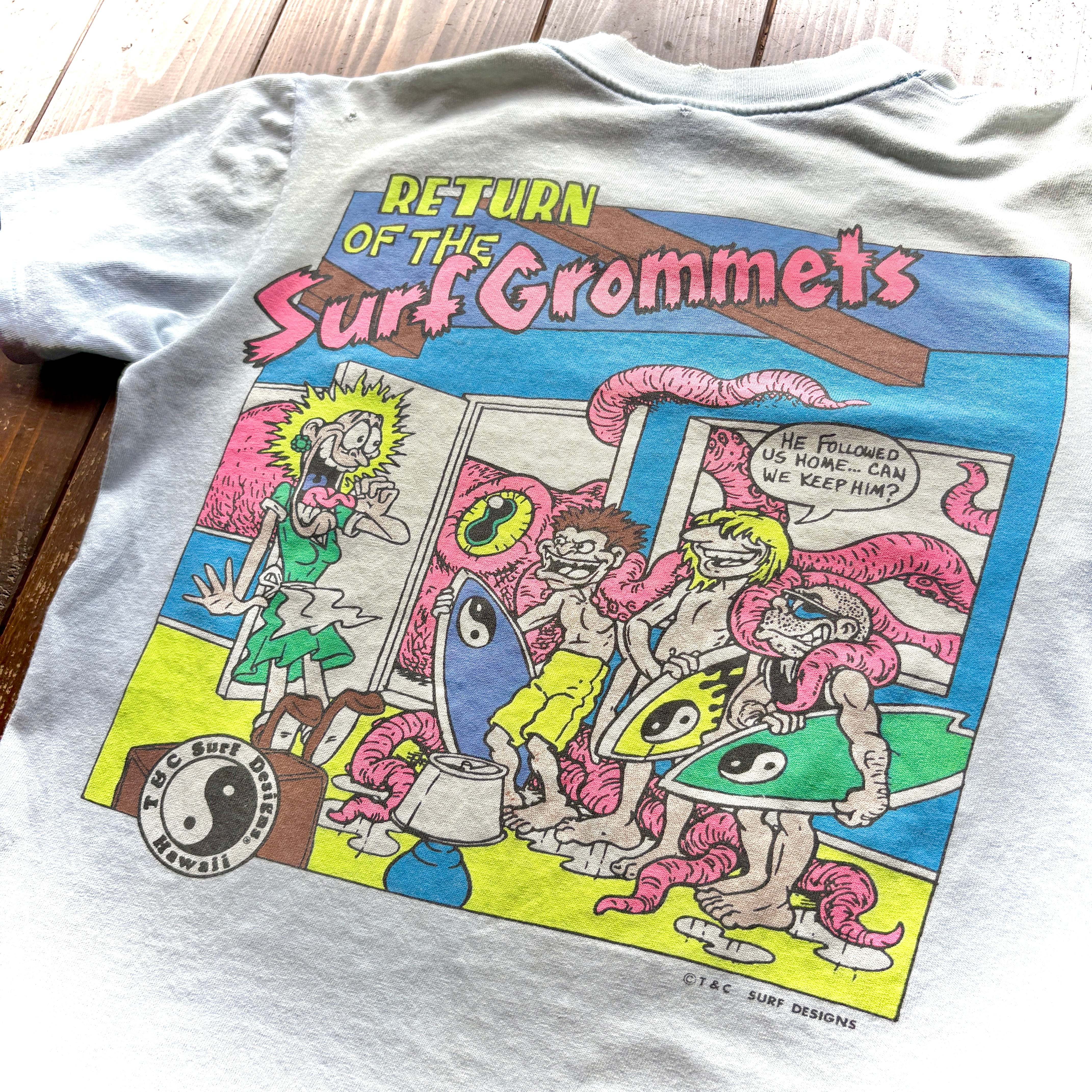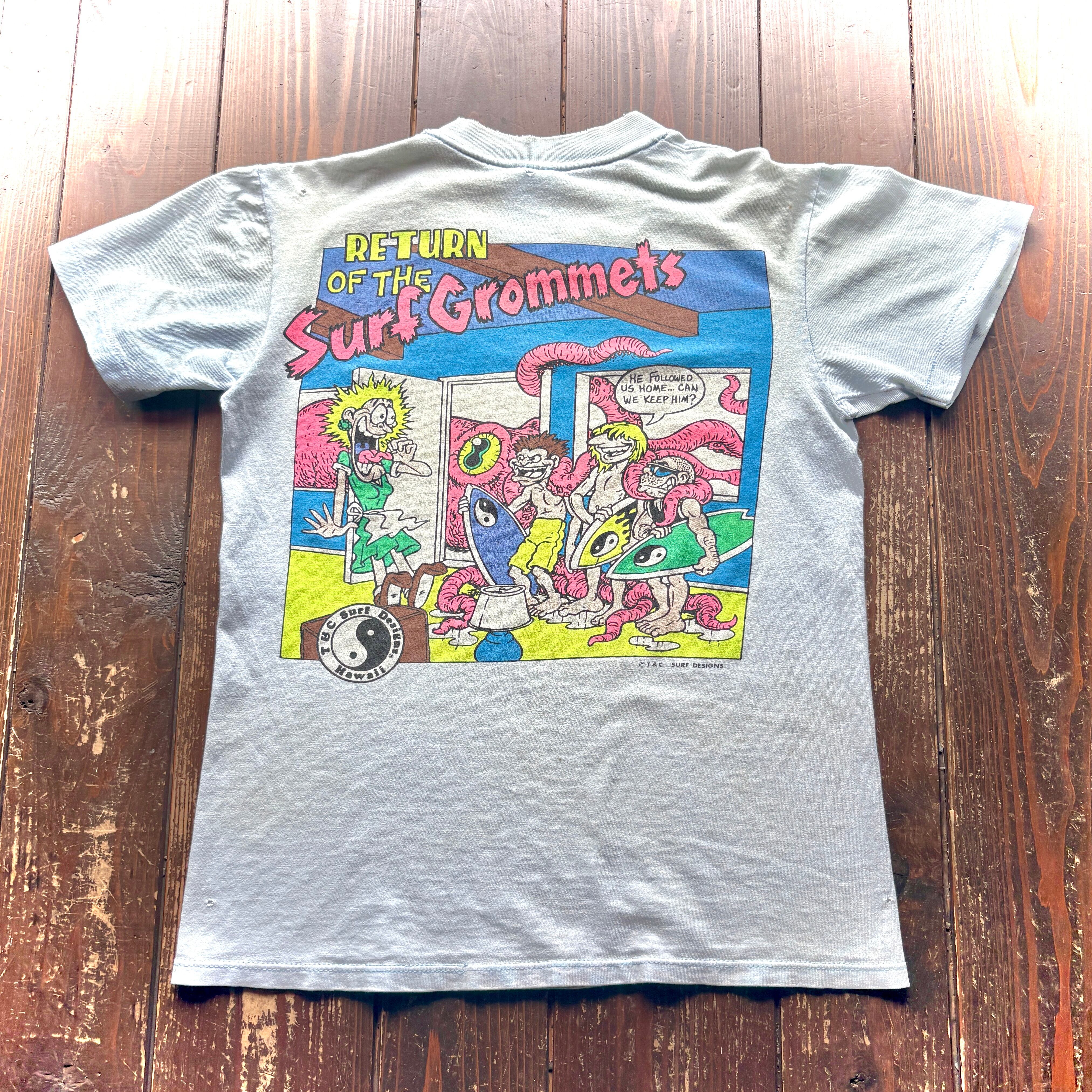 for Ladies♡ 80s Town&Country Surf Design〝RETURN OF THE Surf Grommets〟 INK Print T-Shirt Body Stedman Made in U.S.A / Size SMALL