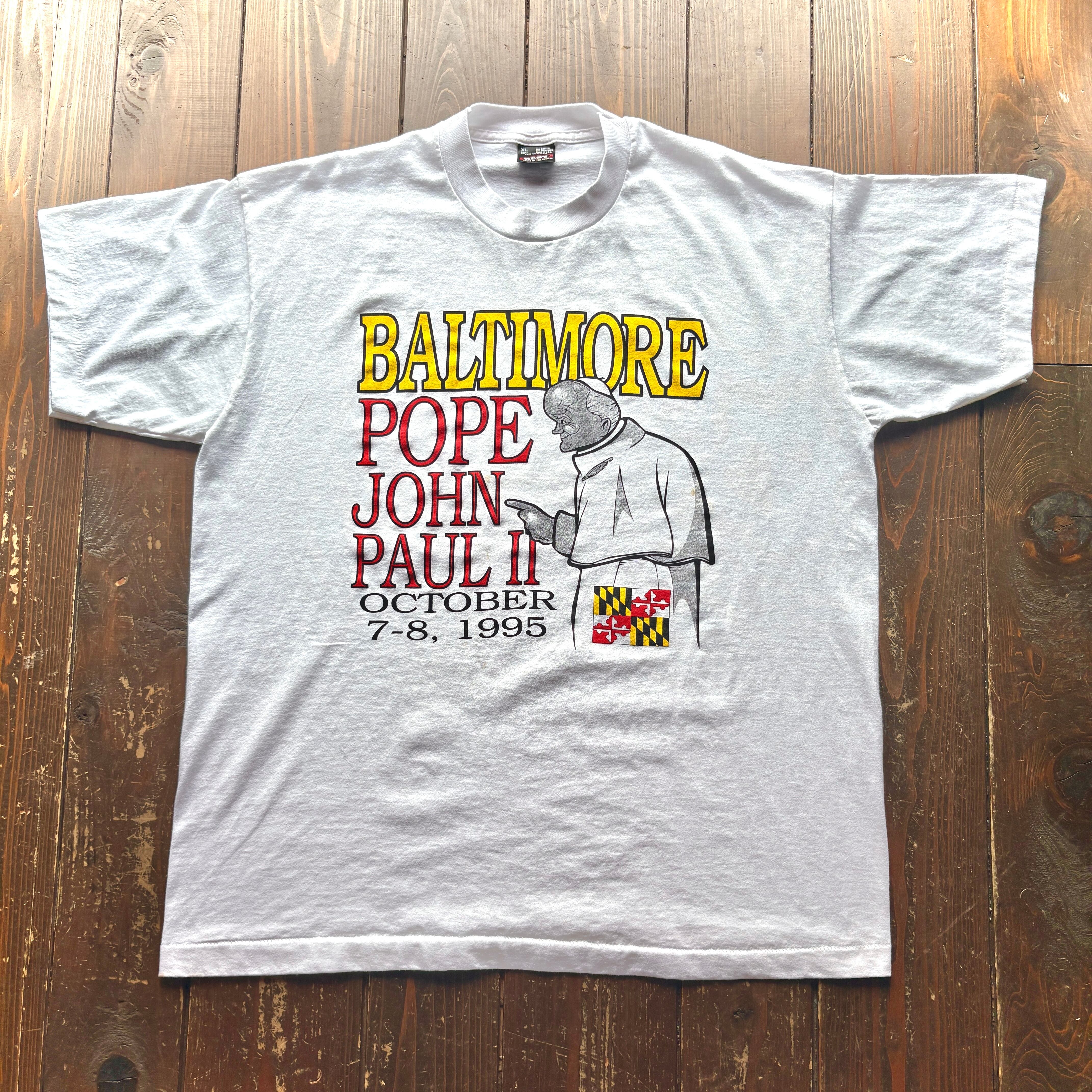 90s POPE JOHN- PAUL II 〝BALTIMORE 〟Visit Souvenir T-Shirt : Body FRUITS OF THE LOOM BEST〈MADE IN U.S.A〉 / Size X-LARGE