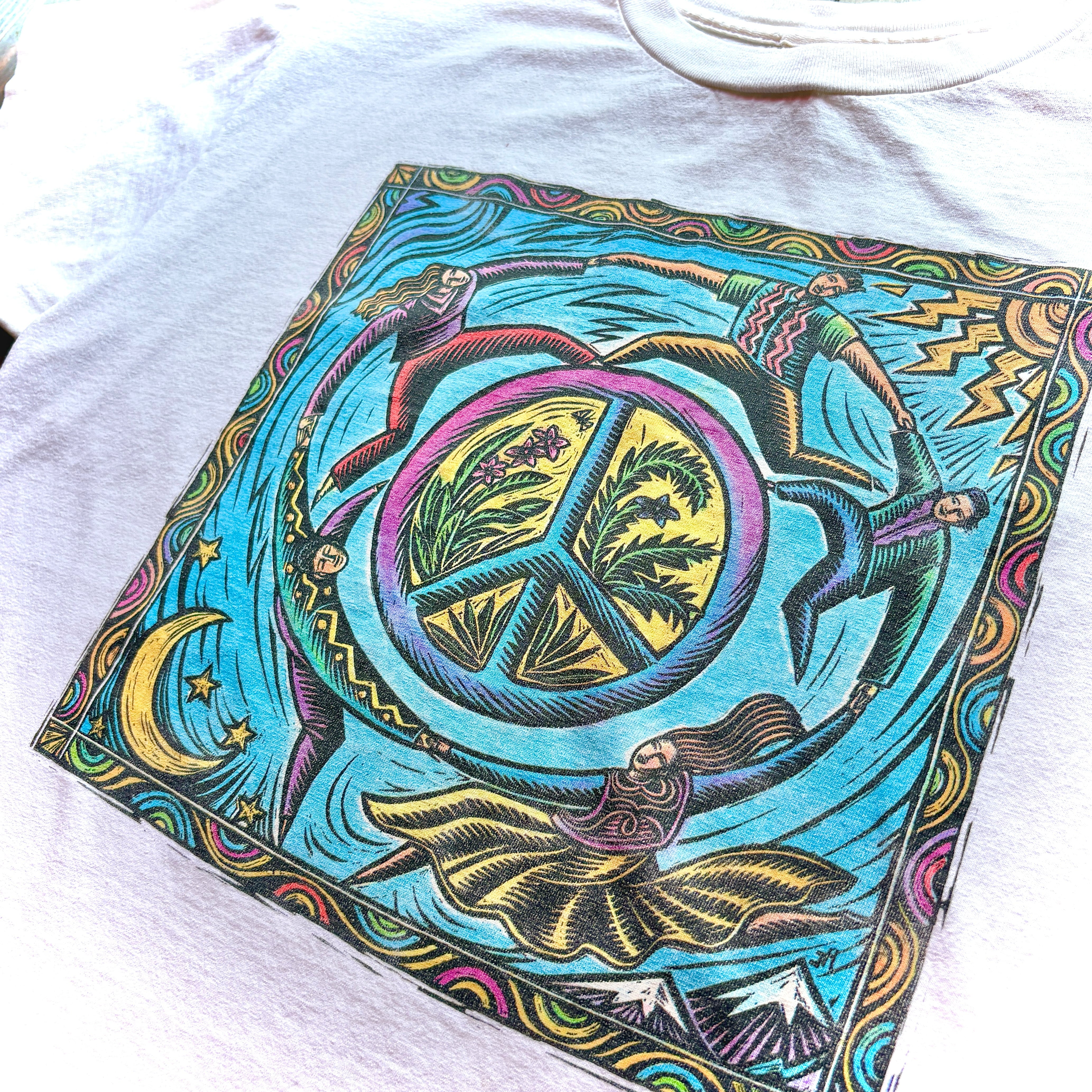 90s Human-i-tee Organic Cotton〝PEACE WORLD〟Print T-Shirt 〈 MADE IN U.S.A 〉/ Size X-LARGE