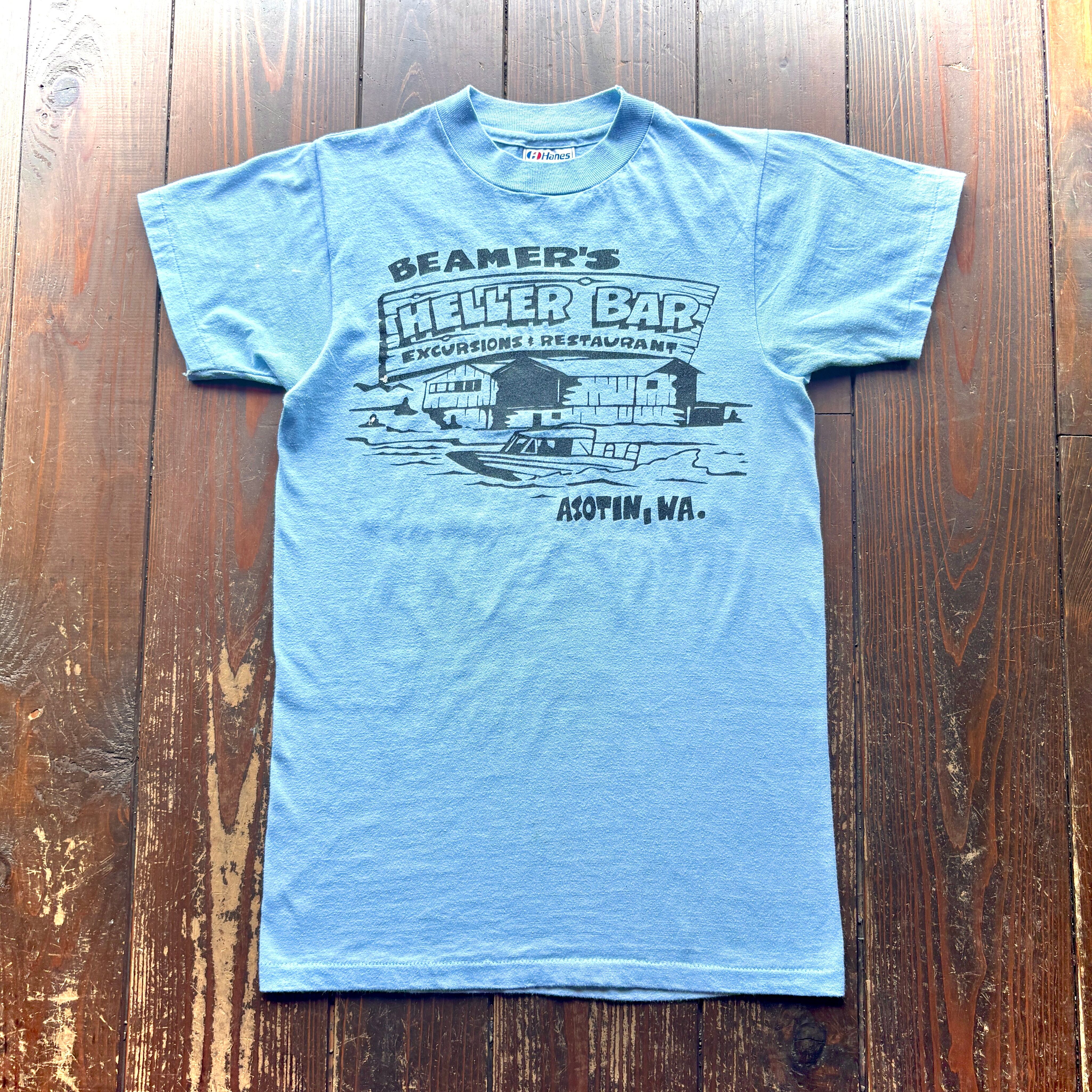 for Ladies ♡ 90s〝 HELLER BAR 〟 Excursions:Restaurant Souvenir T-Shirt : Body Hanes〈 MADE IN U.S.A〉/ Size SMALL