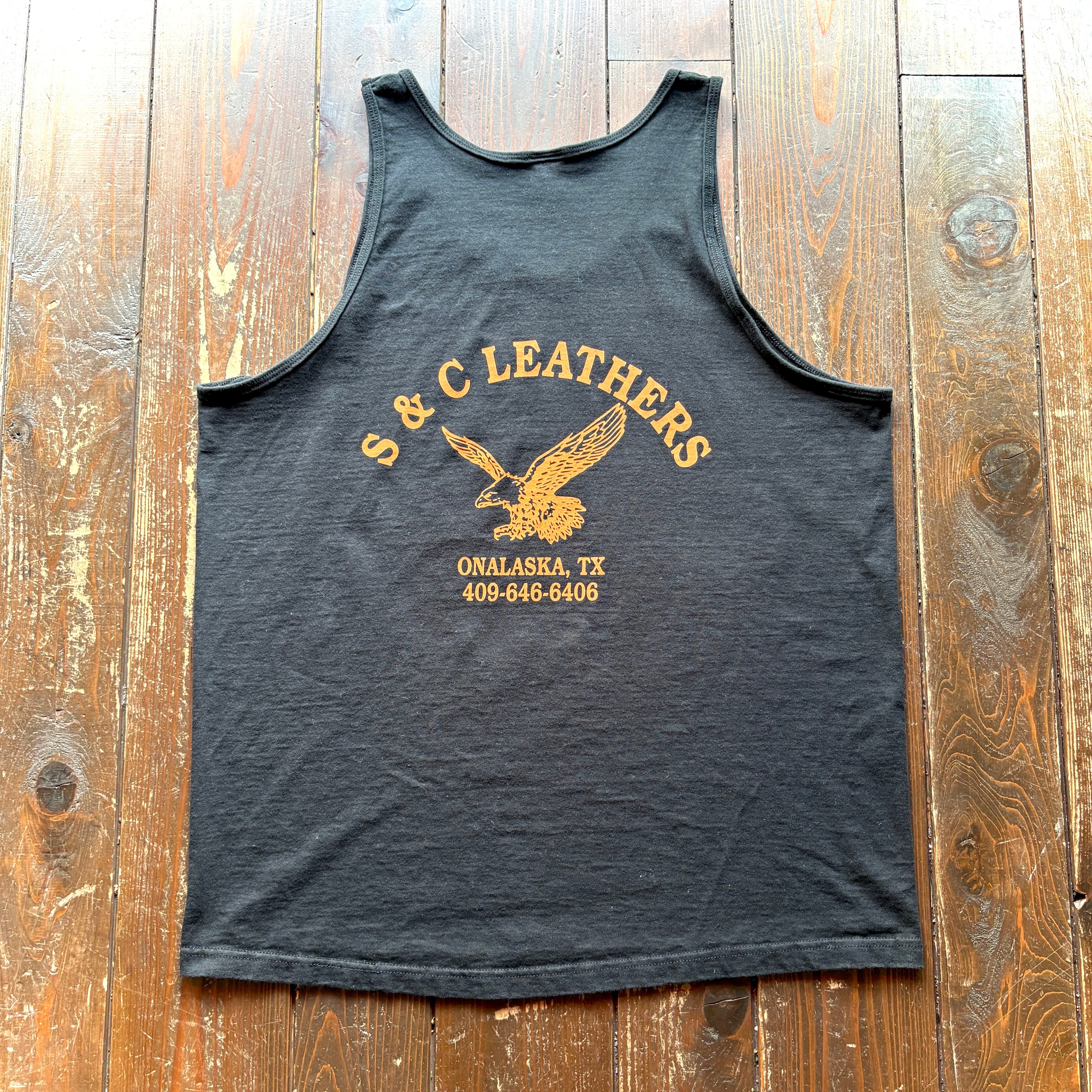 90s from TEXAS ONALASKA〝S & C LEATHER 〟 Local Leather Bike Accessory Shop Pgnup Girl Print Tank top / Body FRUITS OF THE LOOM / Size X-LARGE
