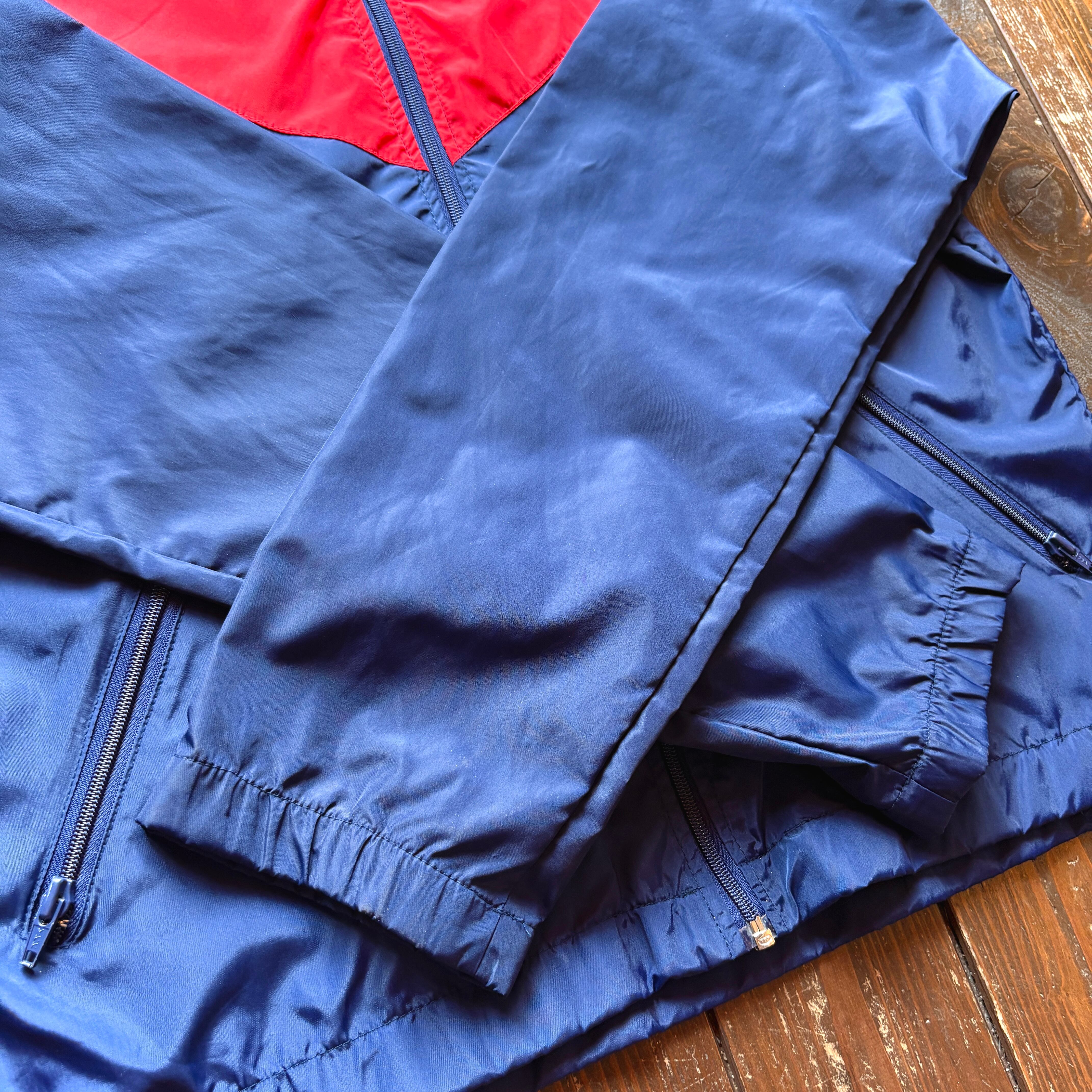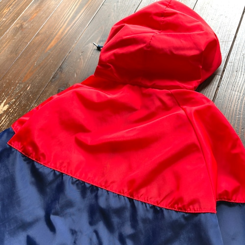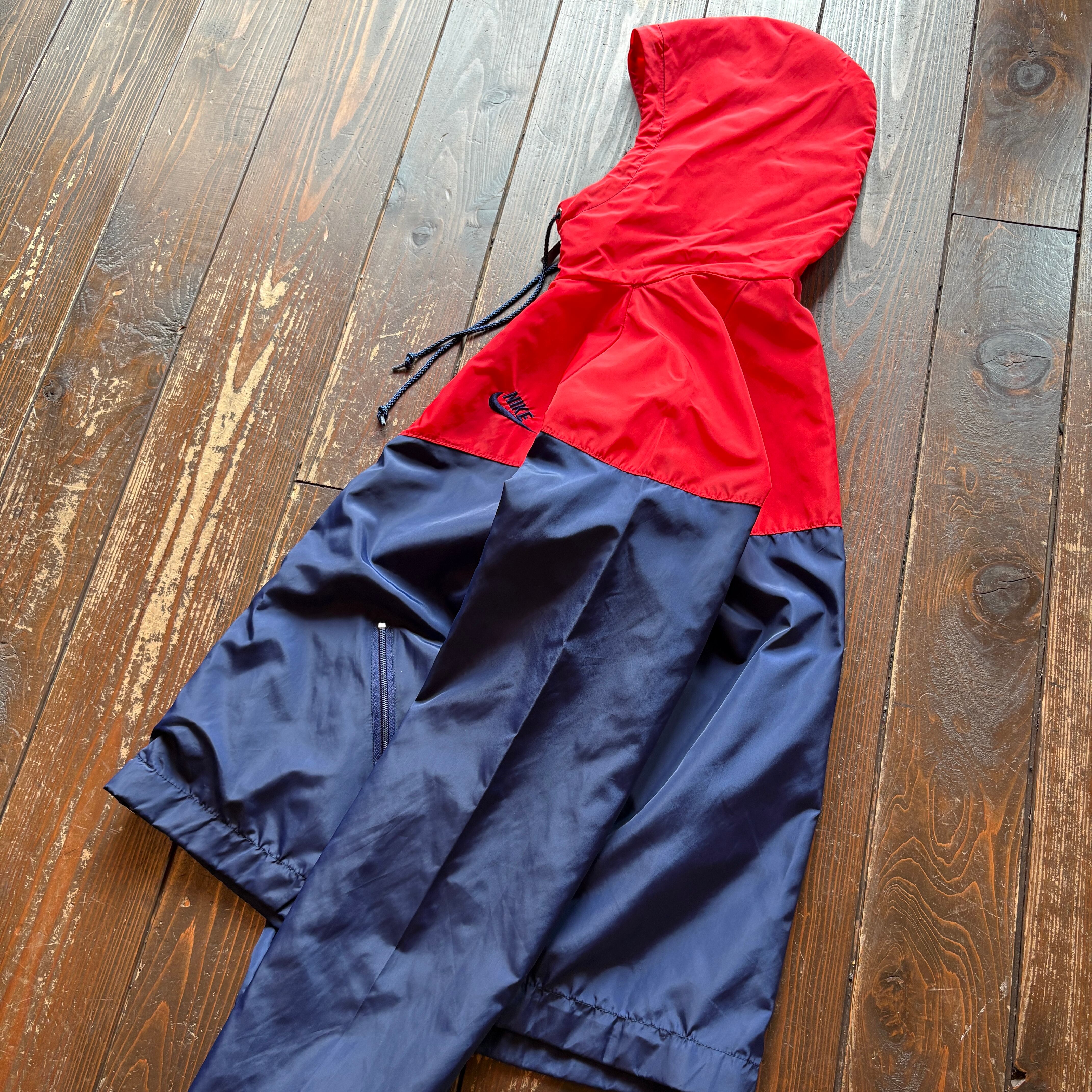 90s NIKE Silver tag Logo Embroidery 2tone Color Nylon Windbreaker Hoodie / Size MEDIUM