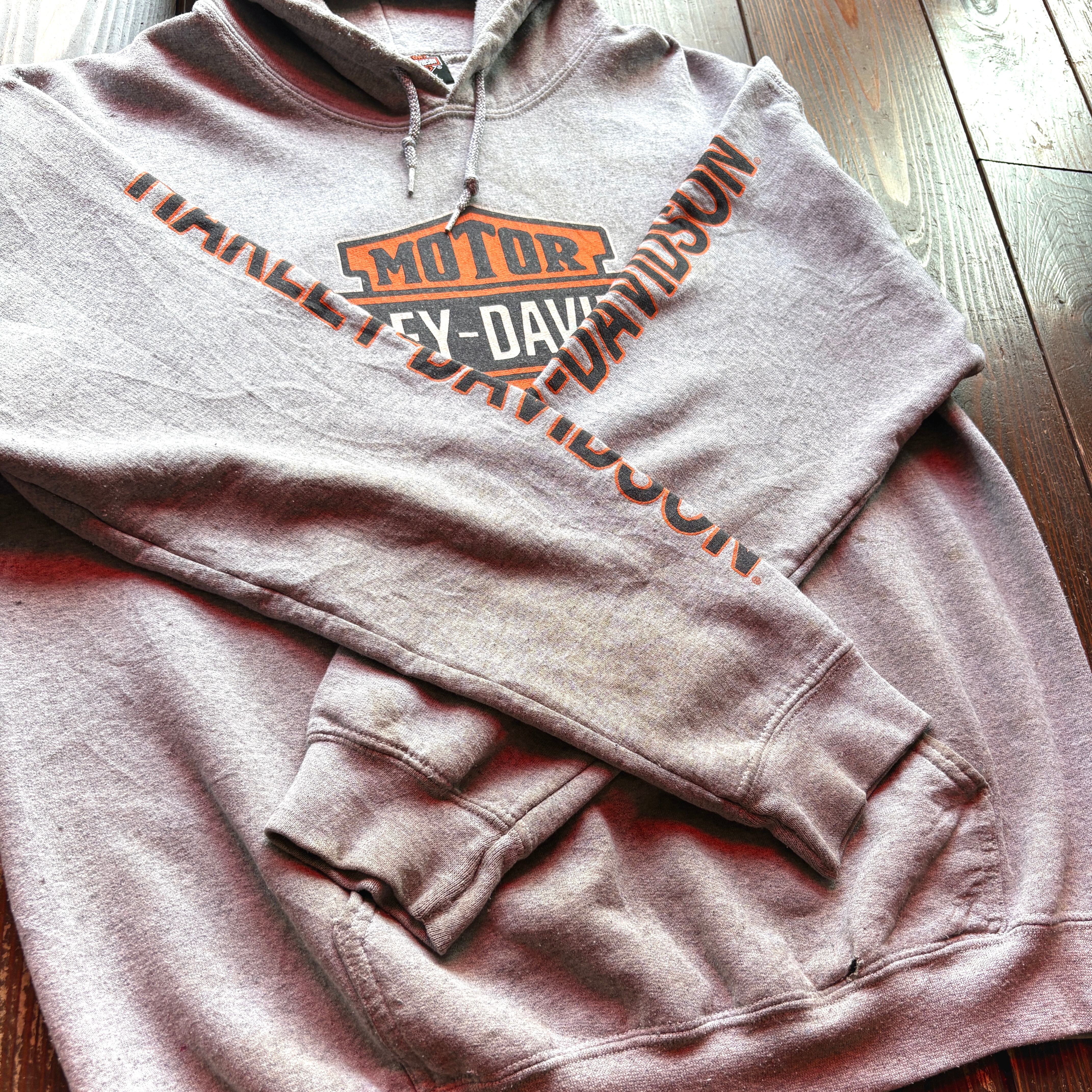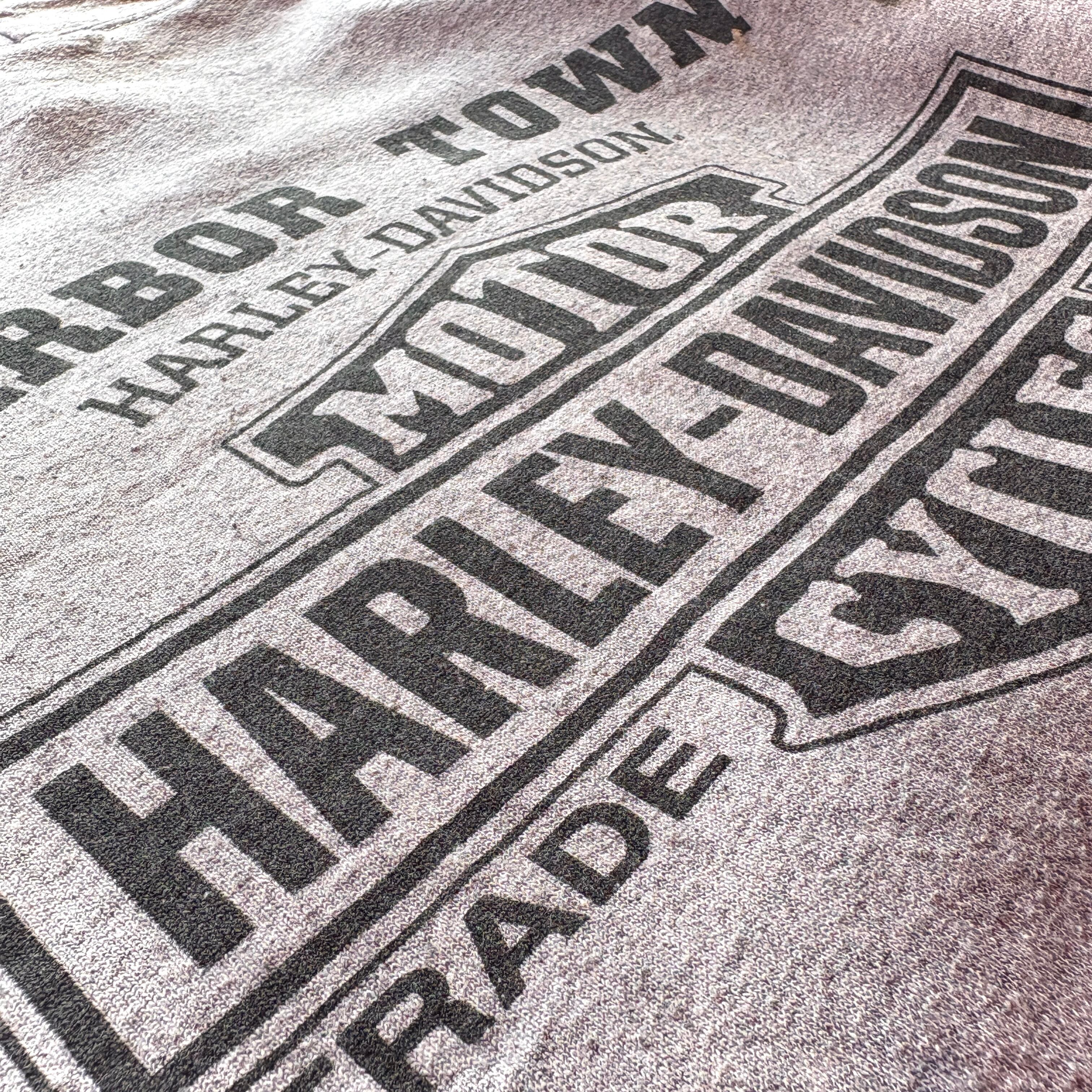 90's HARLEY - DAVIDSON 〝Harbor Town Manitowoc Dealer 〟 4side Print Dealer Shop Sweat Hoodie / Size LARGE