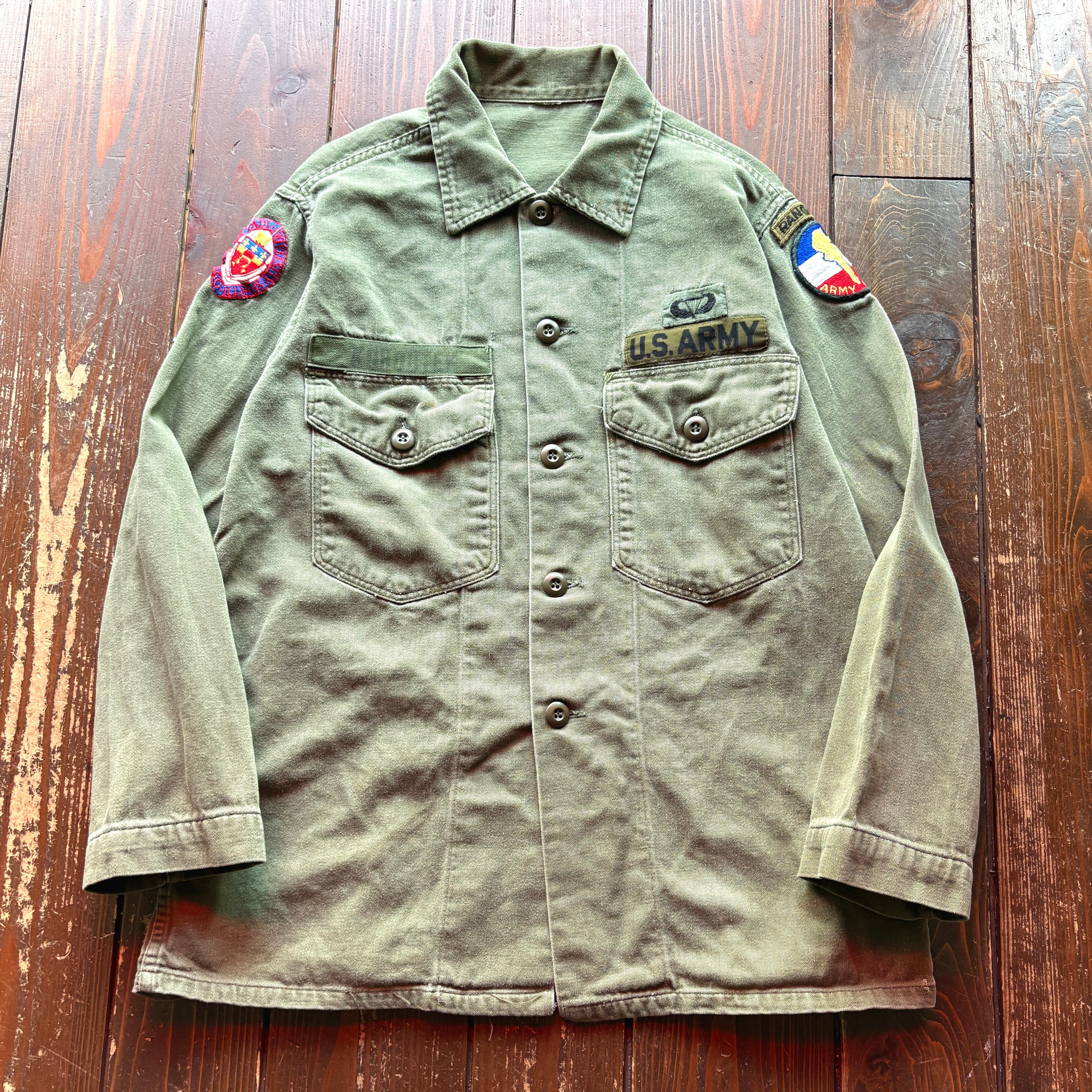60's U.S.ARMY Cotton Satin Utility Shirt Shirt Sleeve 2nd model / Size About 15 - 15H