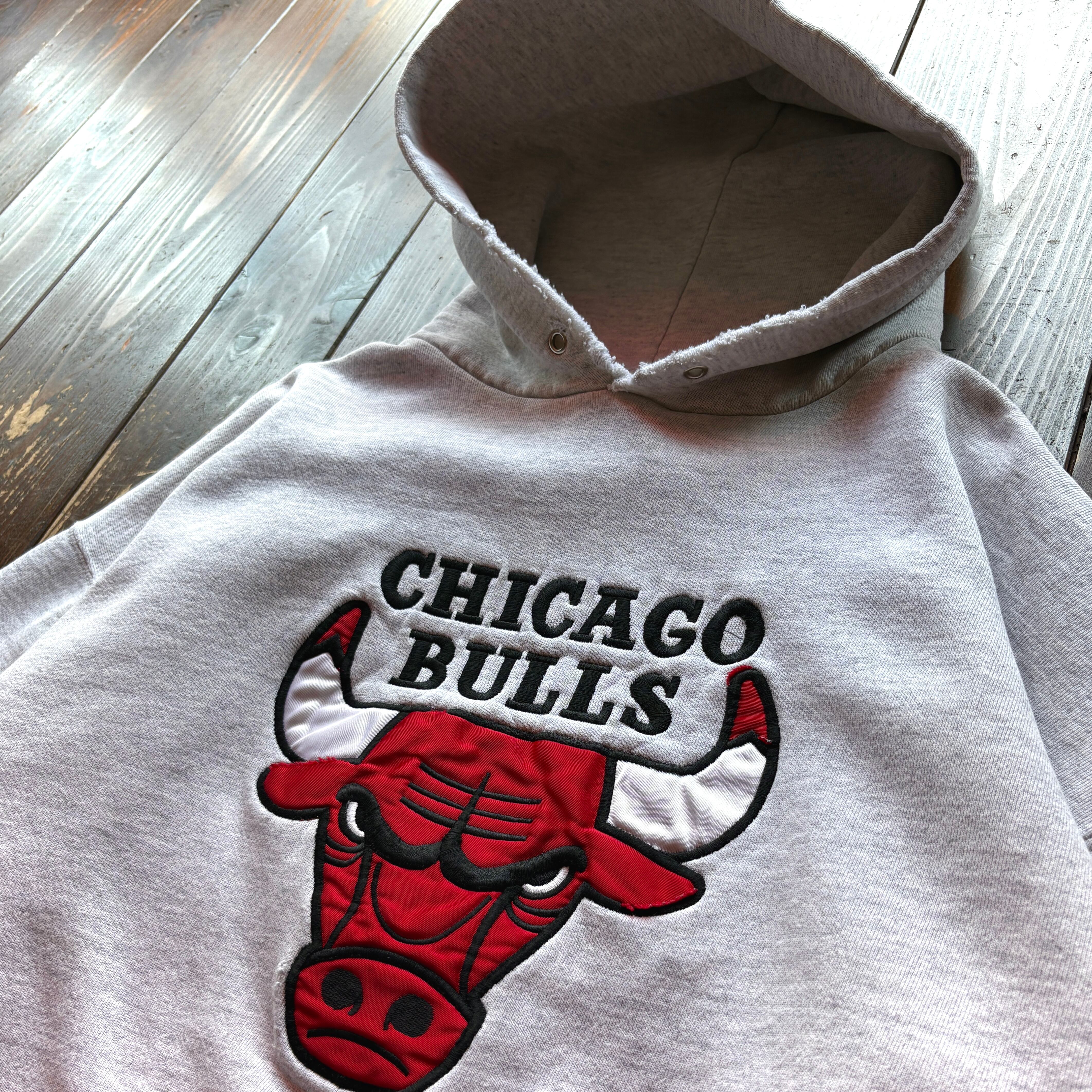 90's NUTMEG MILLS 〝CHICAGO BULLS 〟 Embroidery × Satin Patch Sweat Hoodie〈MADE IN U.S.A〉 / Size X-LARGE