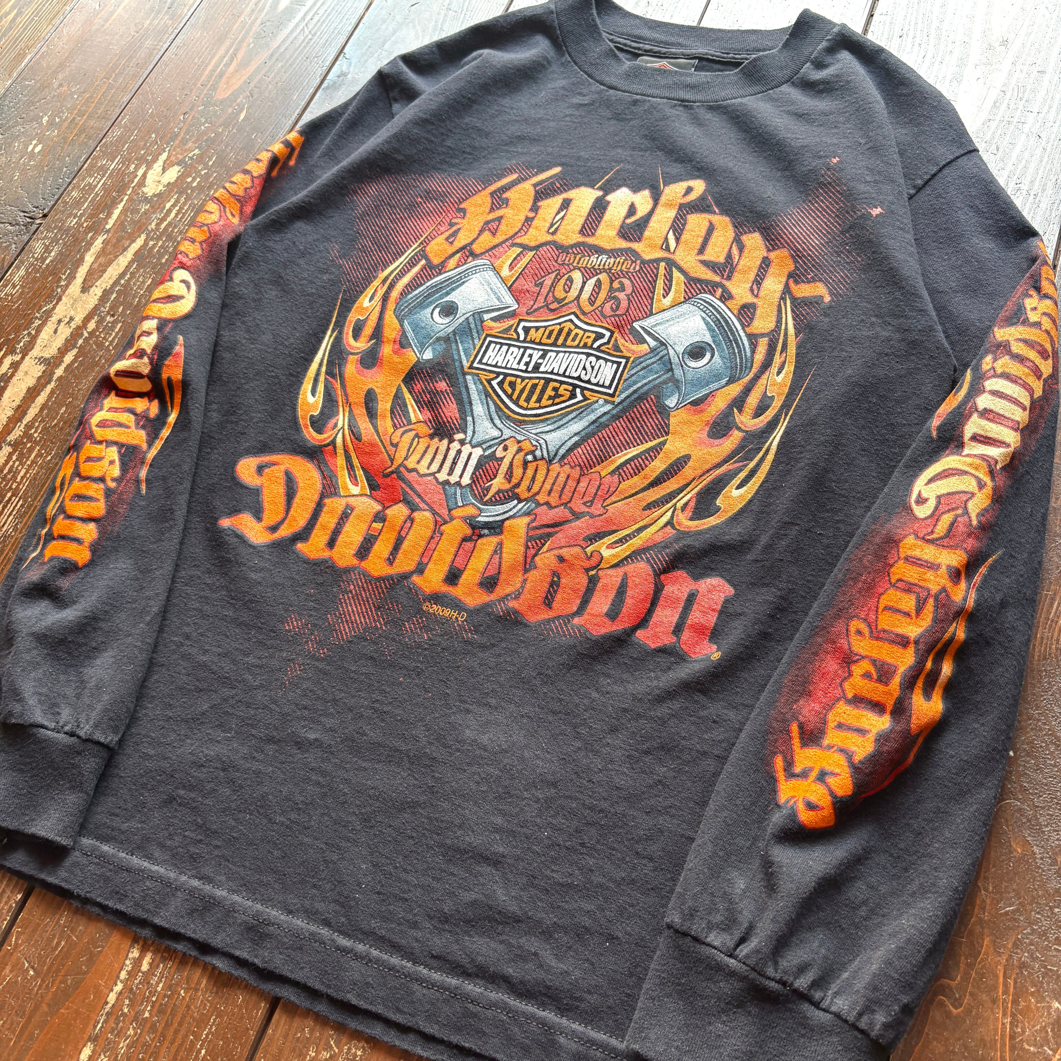 00's HARLEY - DAVIDSON 〝Twin Bomer〟4side Prgnt Long Sleeve T-Shirt 〈MADE IN MEXICO〉 / Size SMALL