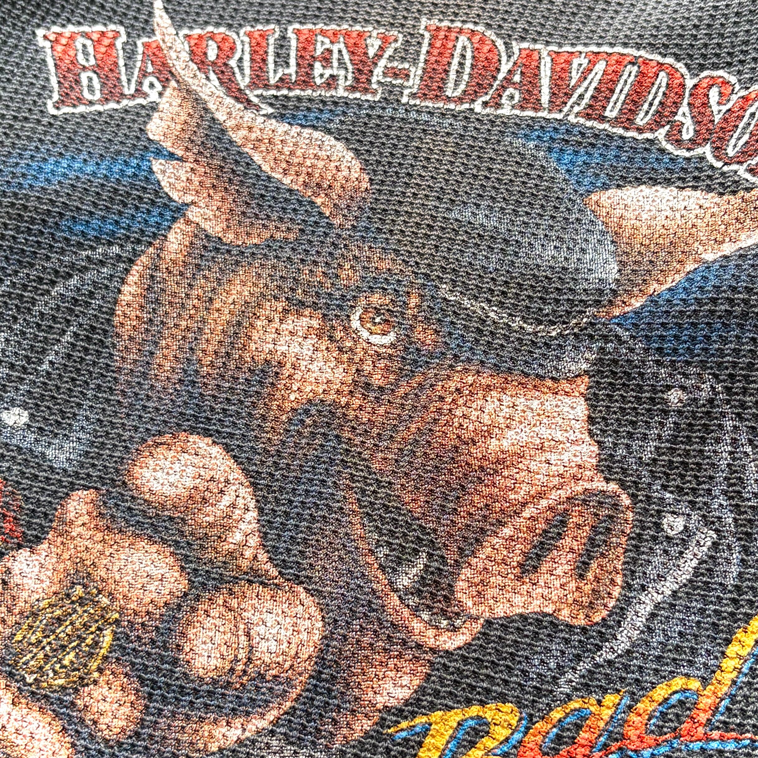 ⭐︎SPECIAL⭐︎ 80's HARLEY - DAVIDSON 〝Bad TO THE BONE 〟Print Thermal Shirt 〈 HAND TEX / MADE IN U.S.A〉 / Size LARGE