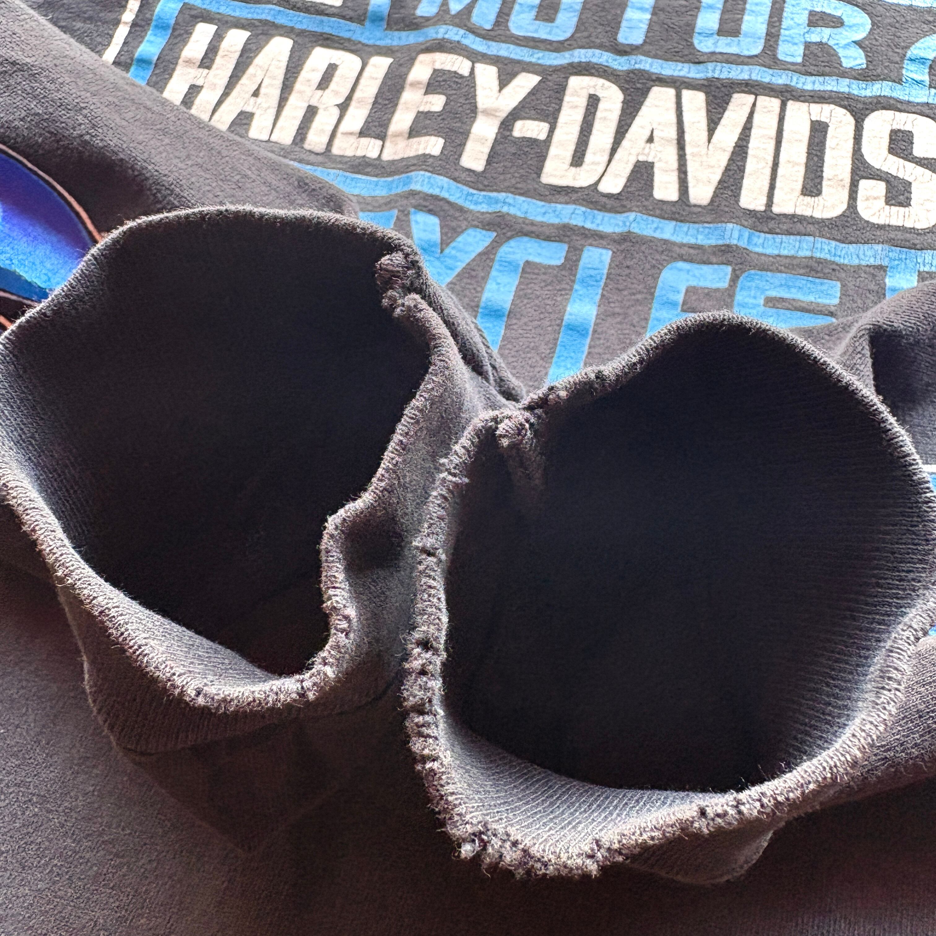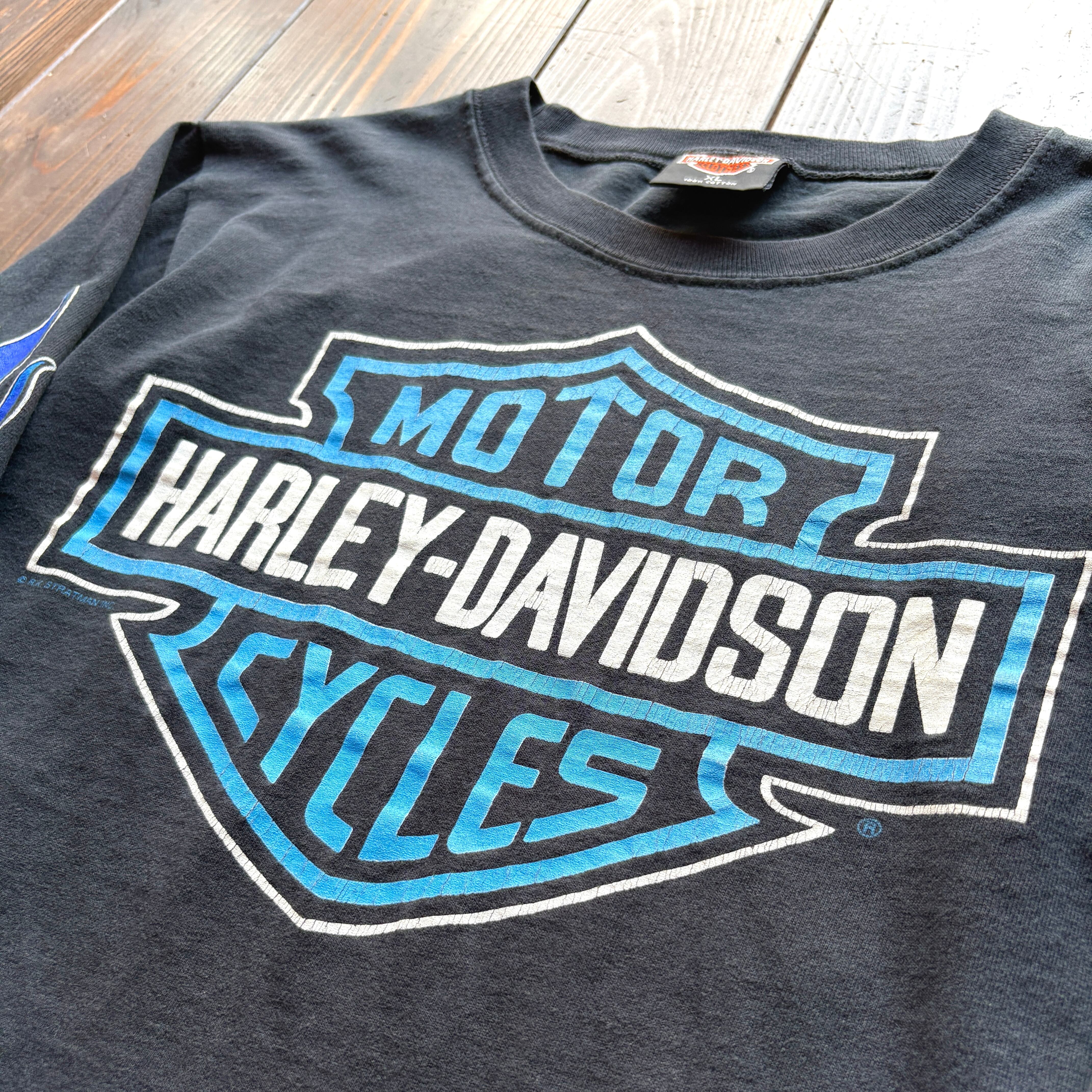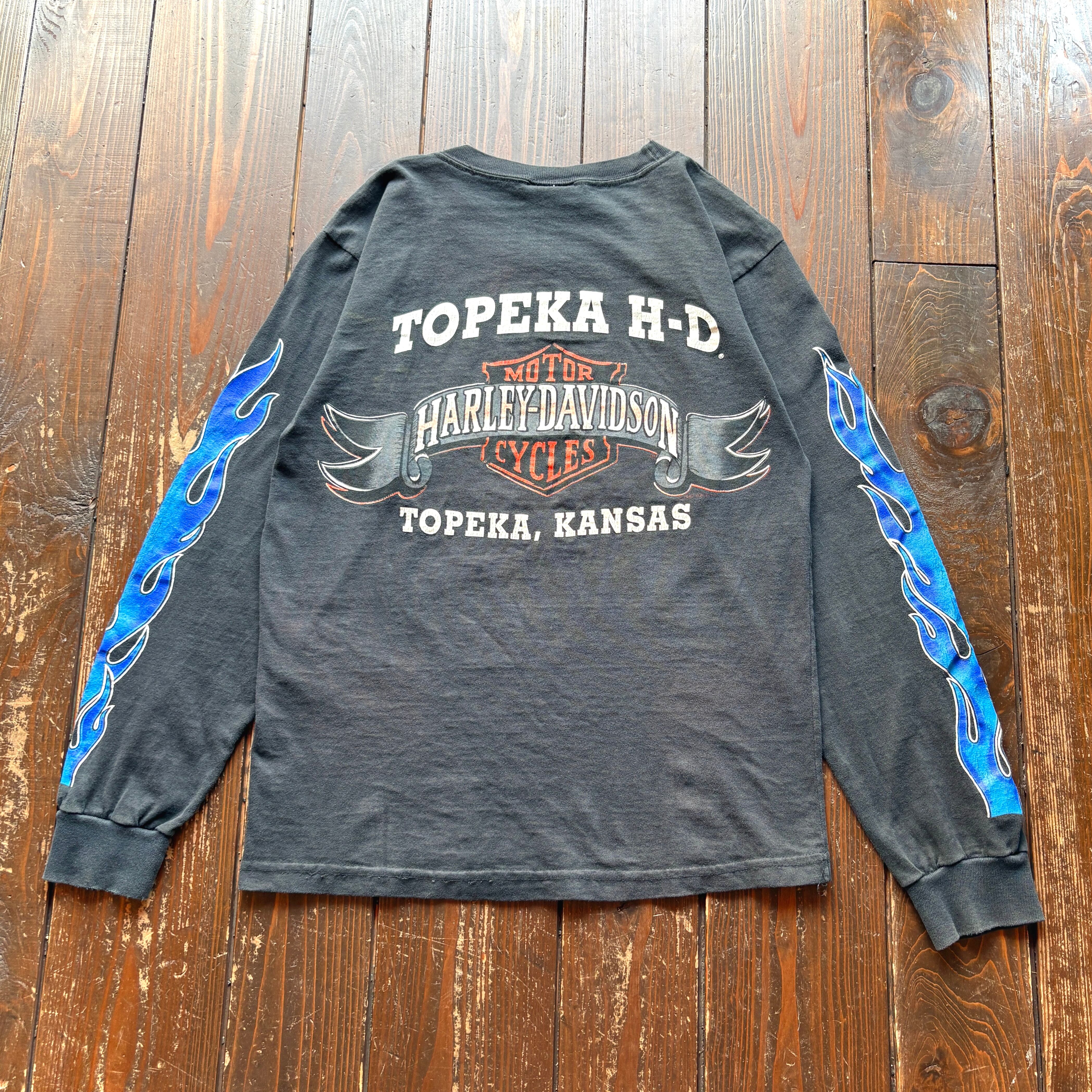 ⭐︎SPECIAL⭐︎ 90's HARLEY-DAVIDSON -BLUE FIRE × EMBLEM - Topeka.Kansas Dealer Long Sleeve T-Shirt 〈MADE IN U.S.A 〉 / Size X-LARGE