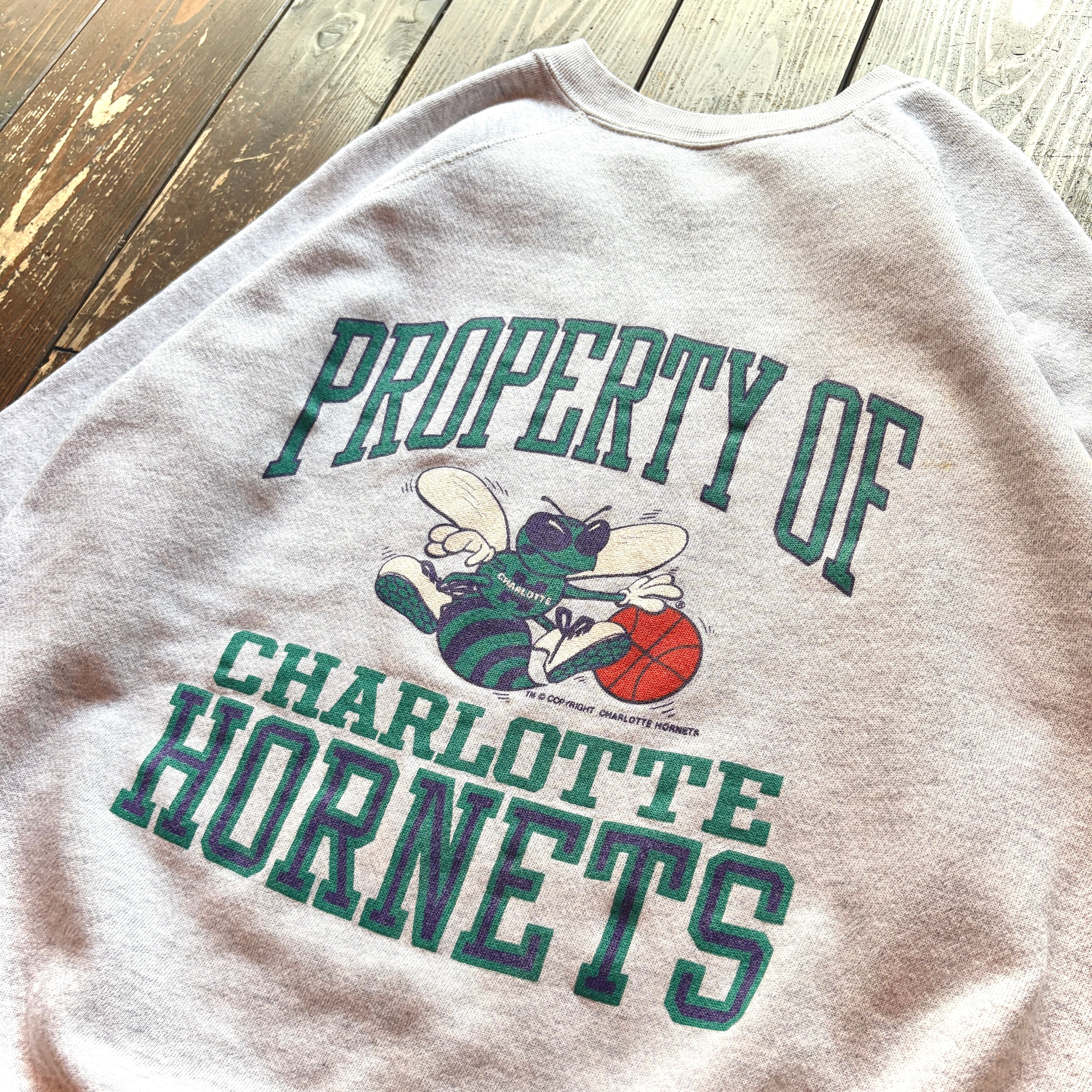 80's〝CHARLOTTE HORNETS 〟INK Print Raglan Sleeve Sweat Shirt Body〈ARTEX MADE IN U.S.A 〉/ Size LARGE