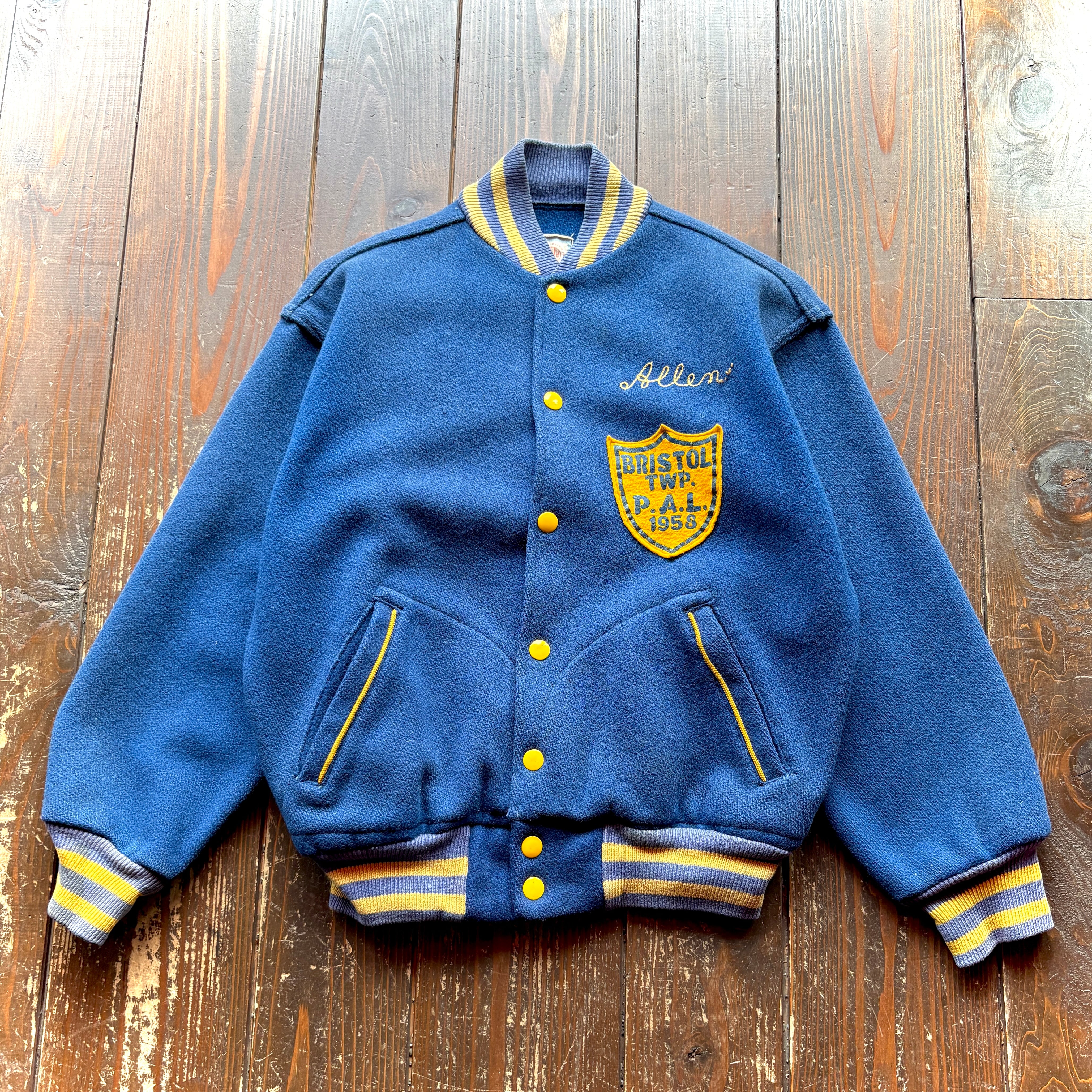 50's EMPIRE Chain Stitch & Letterd Wool Stadium Jacket / Size About X-SMALL