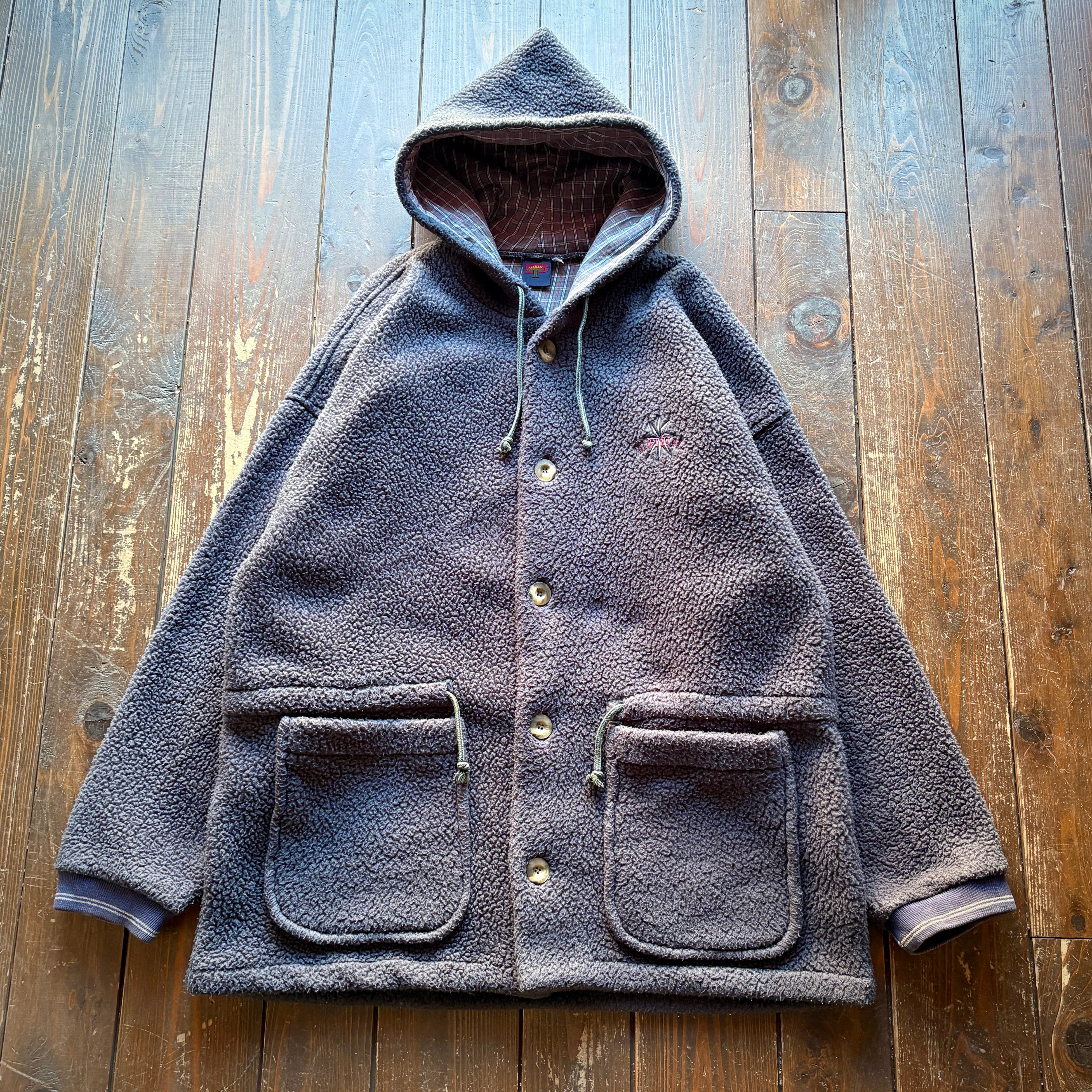 90's BIOTRIBE Fleece Boa Hoodie Coat - MADE IN U.S.A - / Size X-LARGE