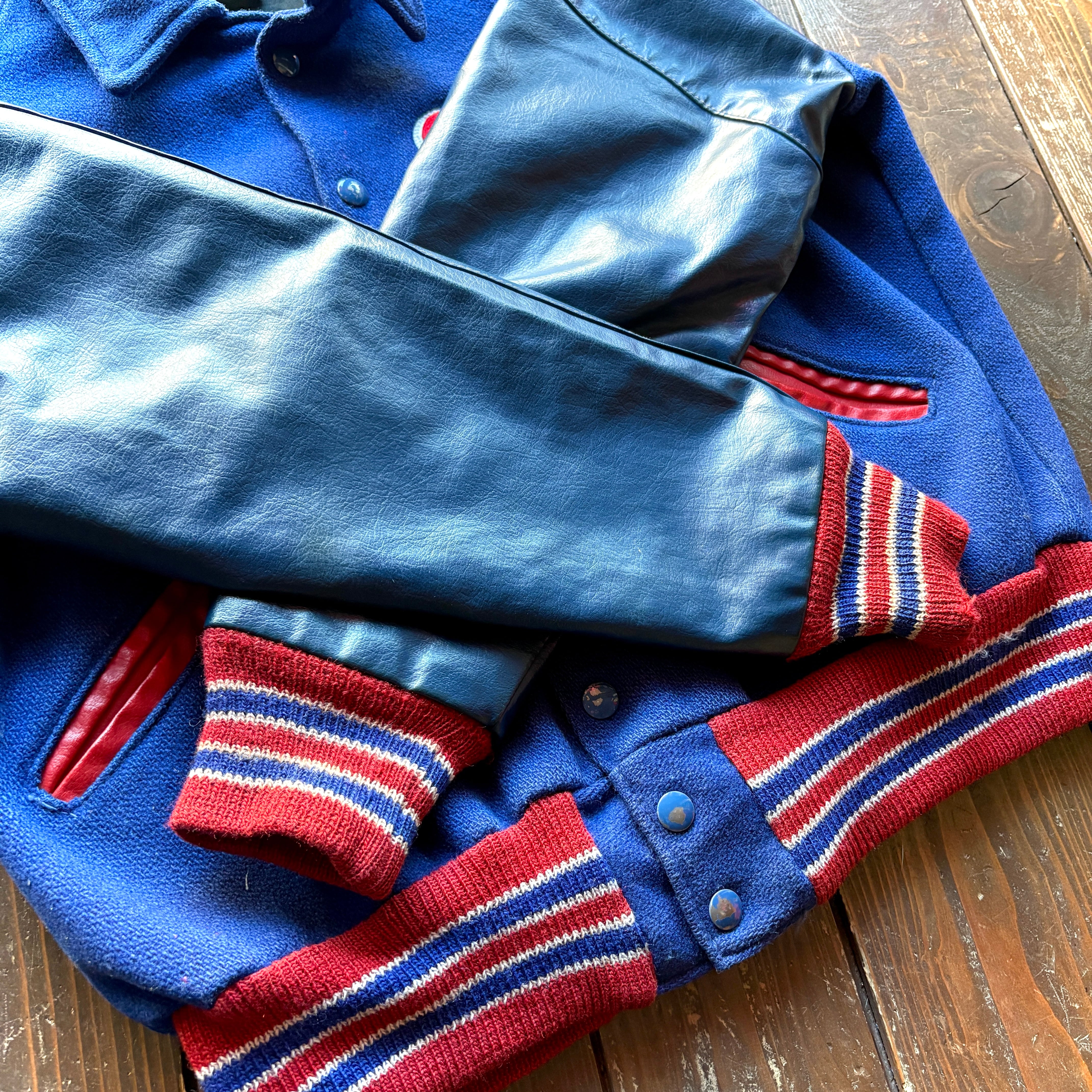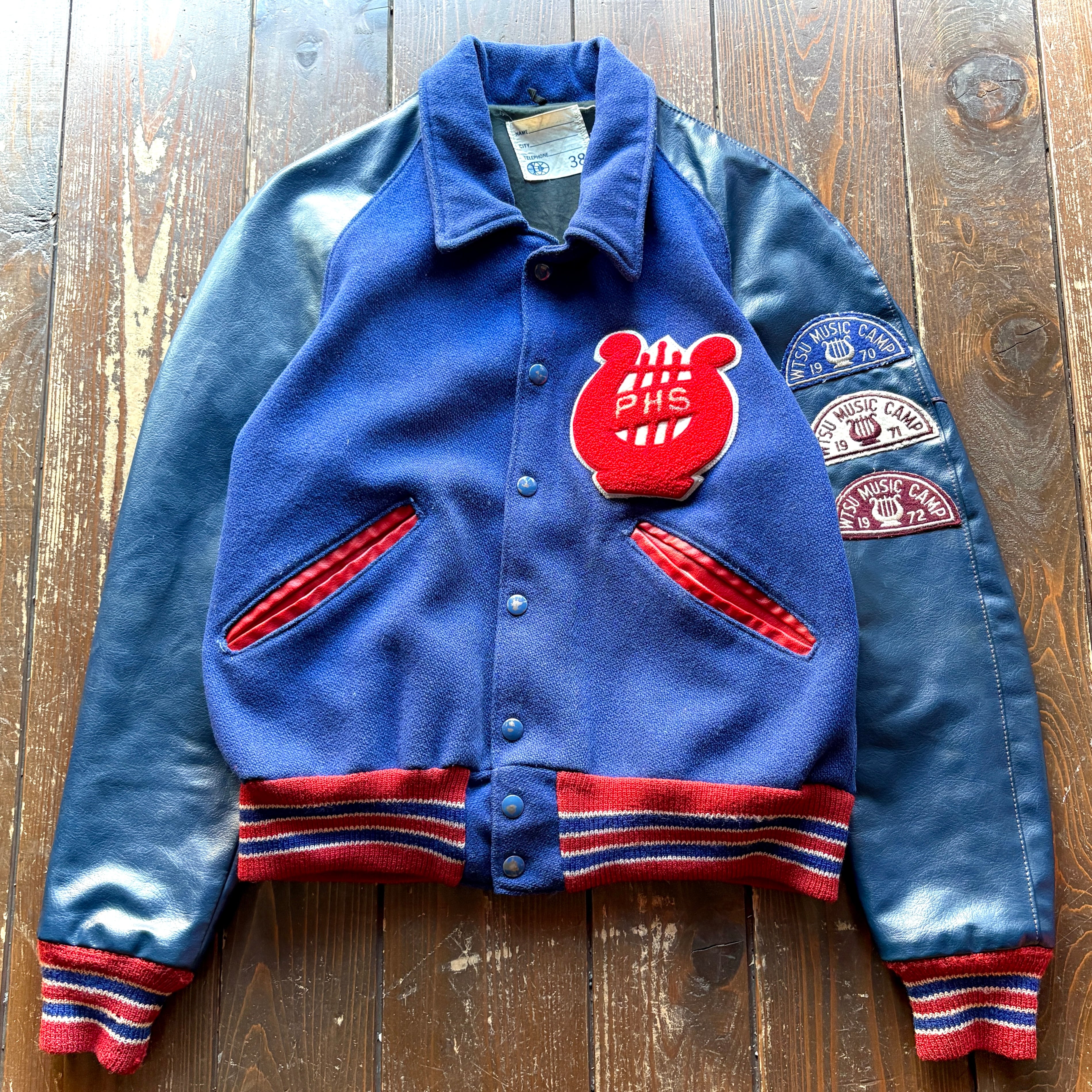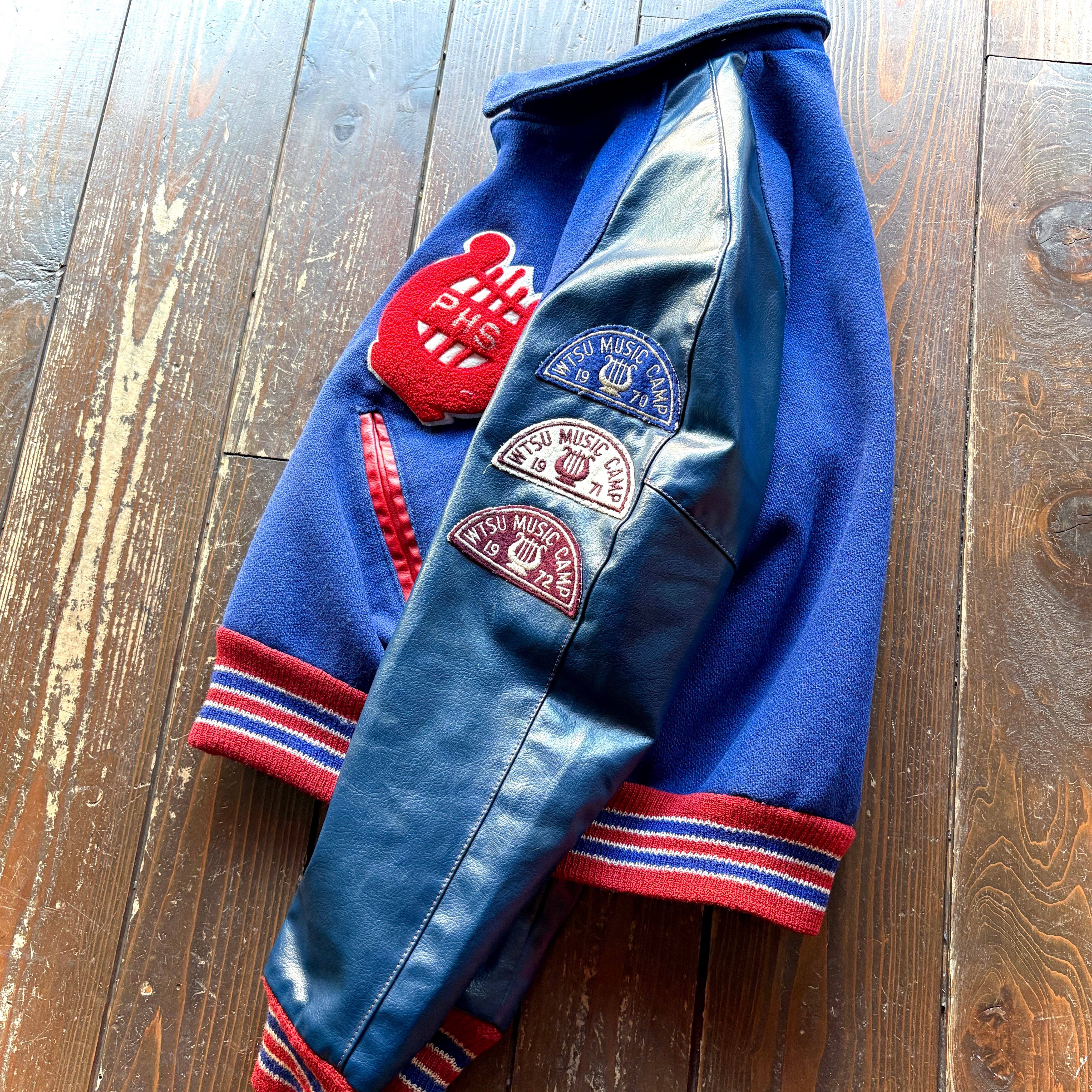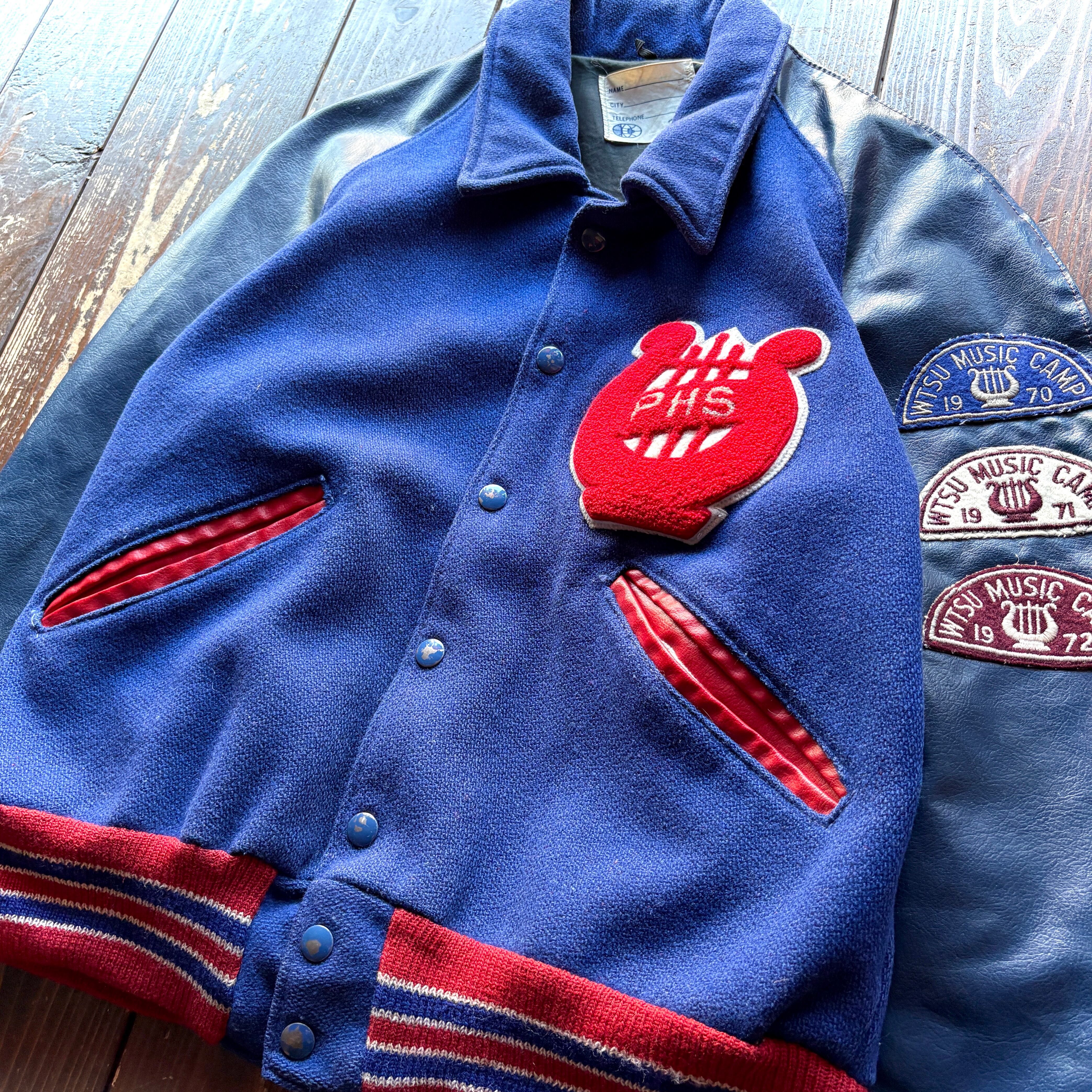 for Ladie ♡ 70's PHS 〈 United States Public Health 〉 〝WTSU MUSIC CAMP〟Souvenir Wool × Leather Stadium Jacket / Size 38 〈 MEDIUM 〉