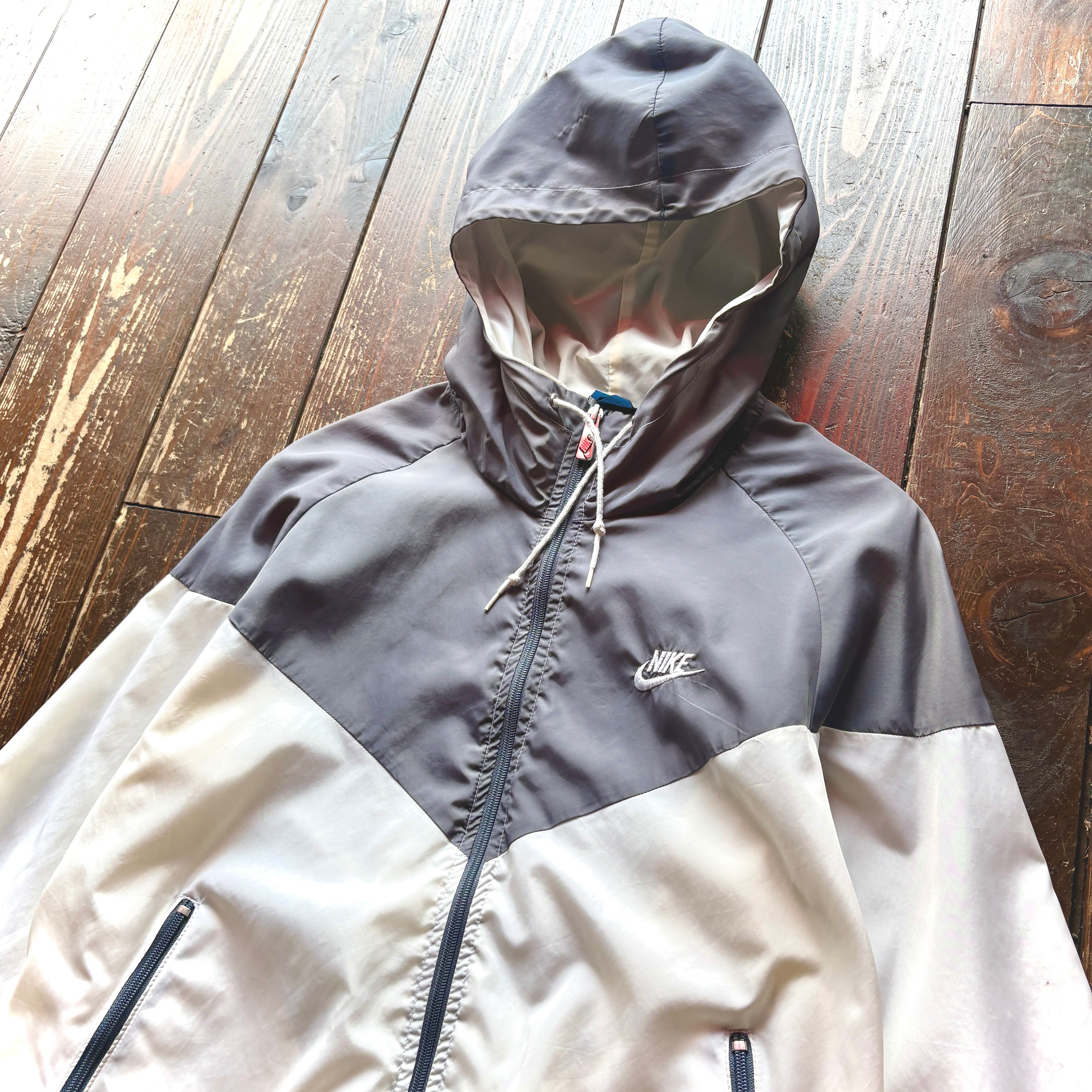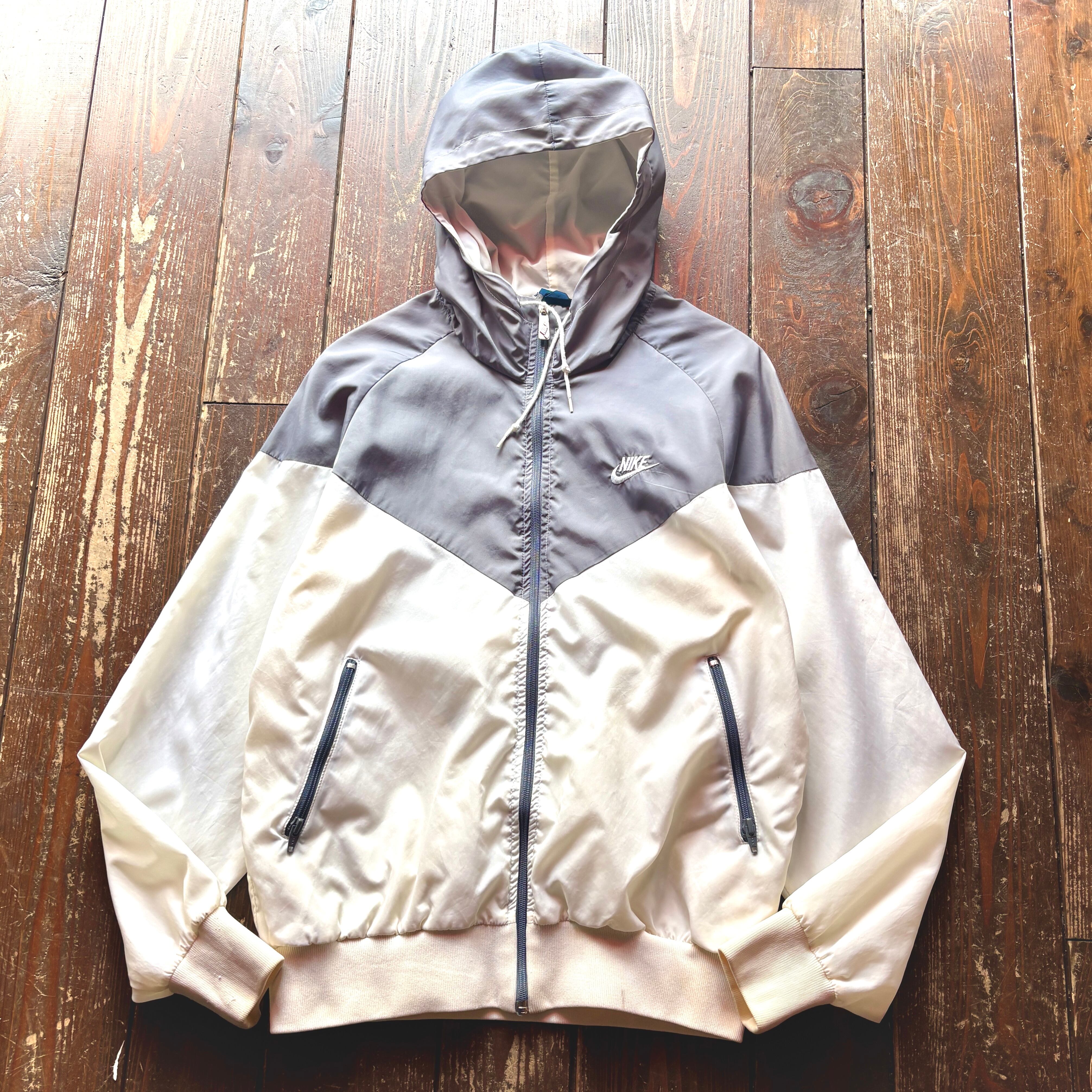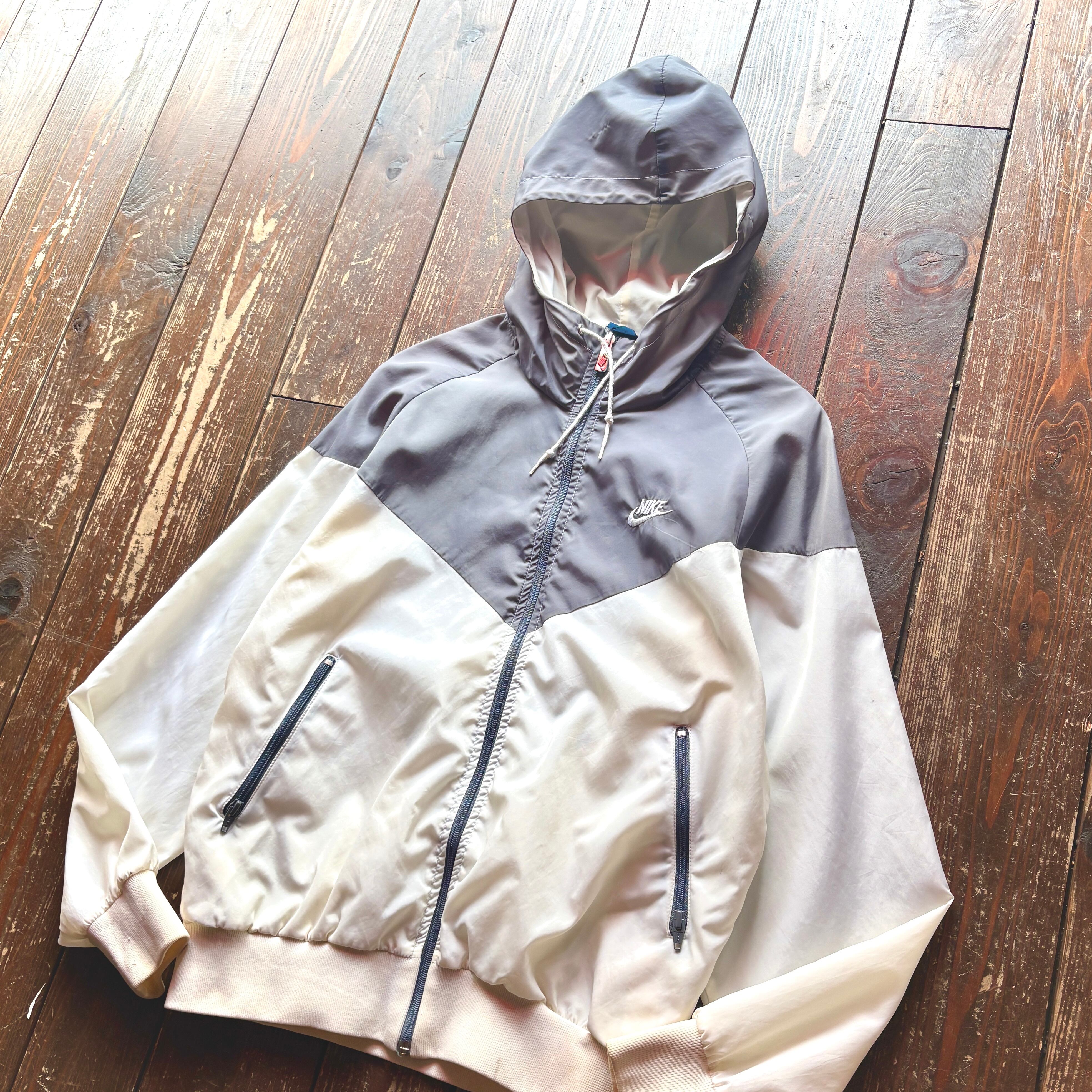 80's NIKE - Navy Tag - Nylon Hoodie Jacket Color Gray × White / Size LARGE