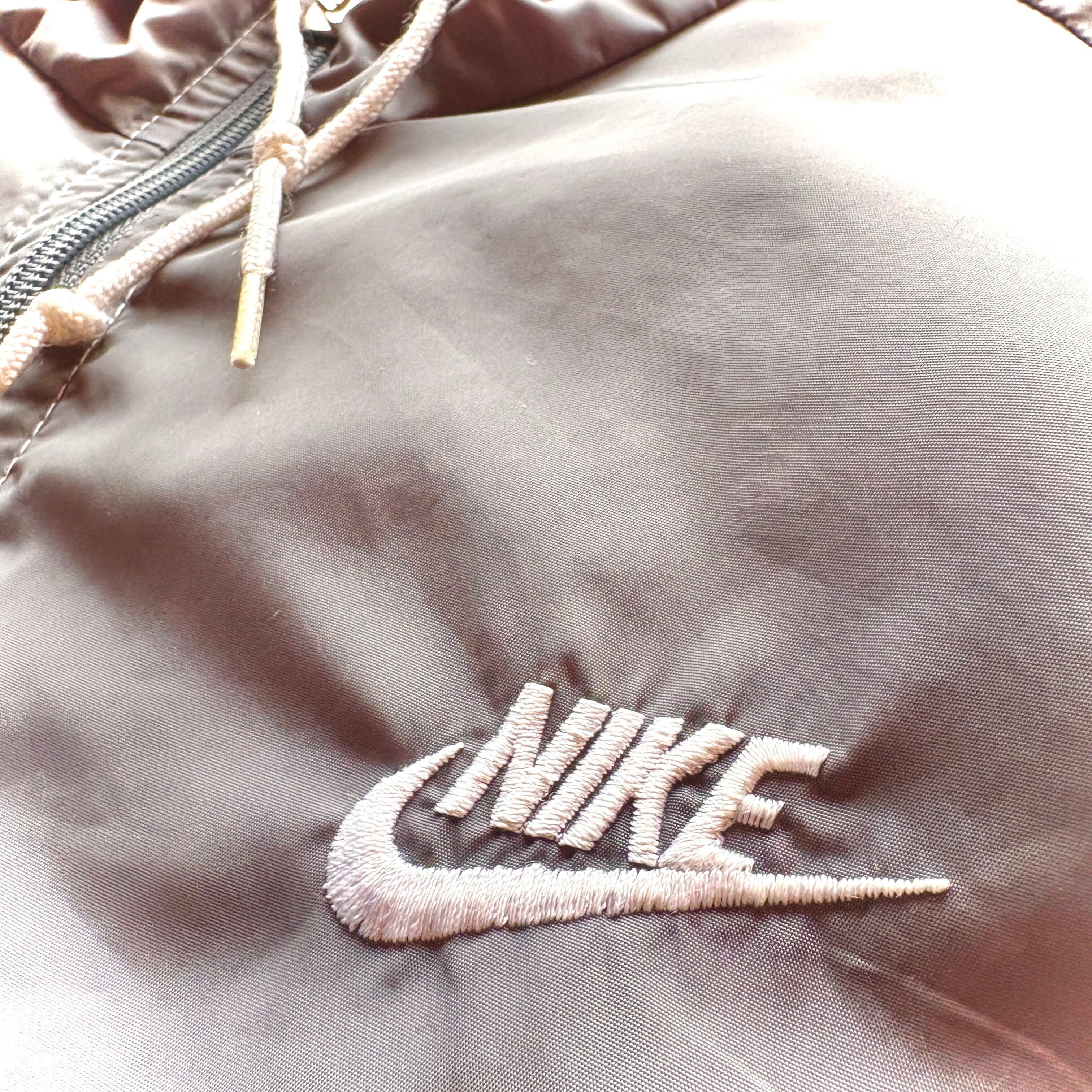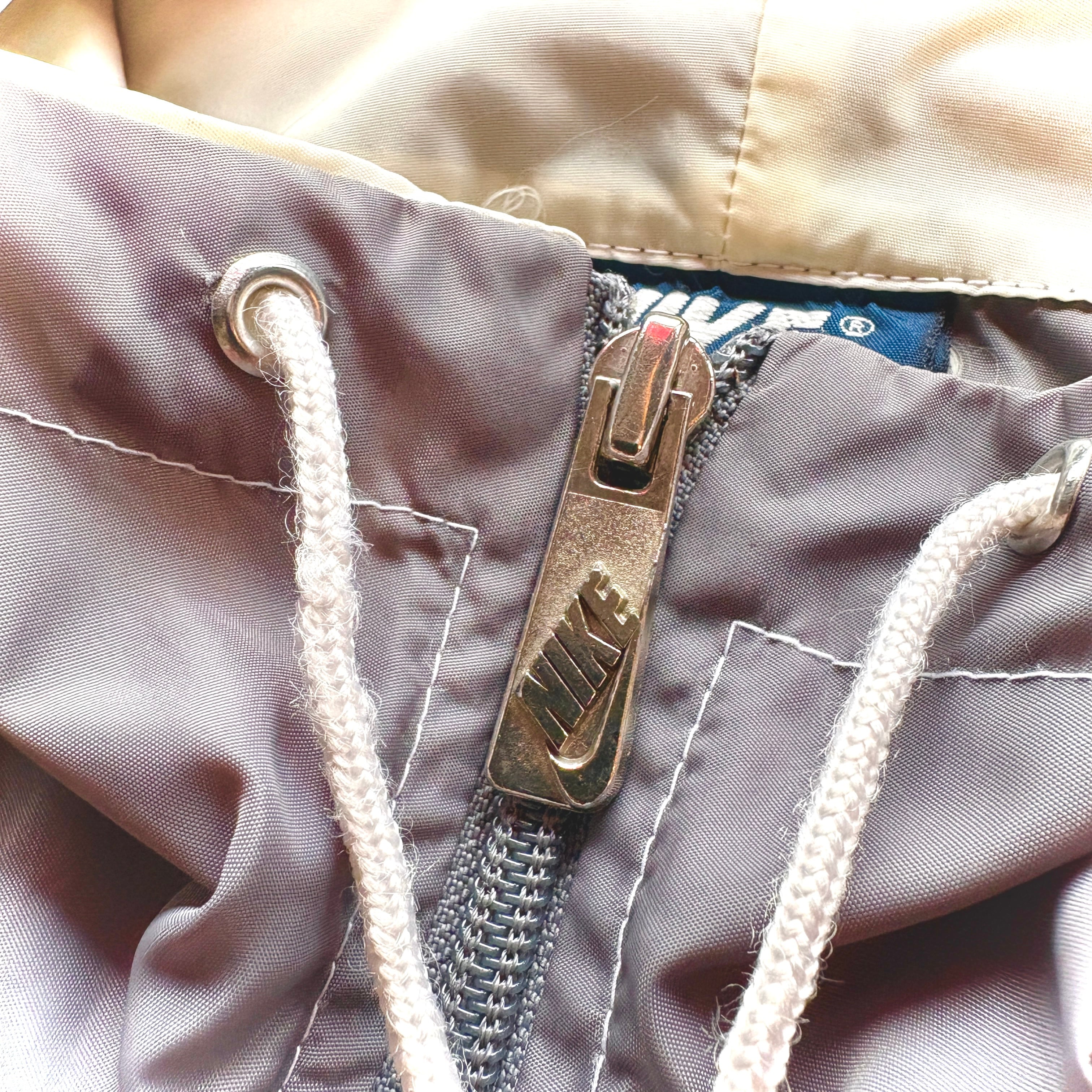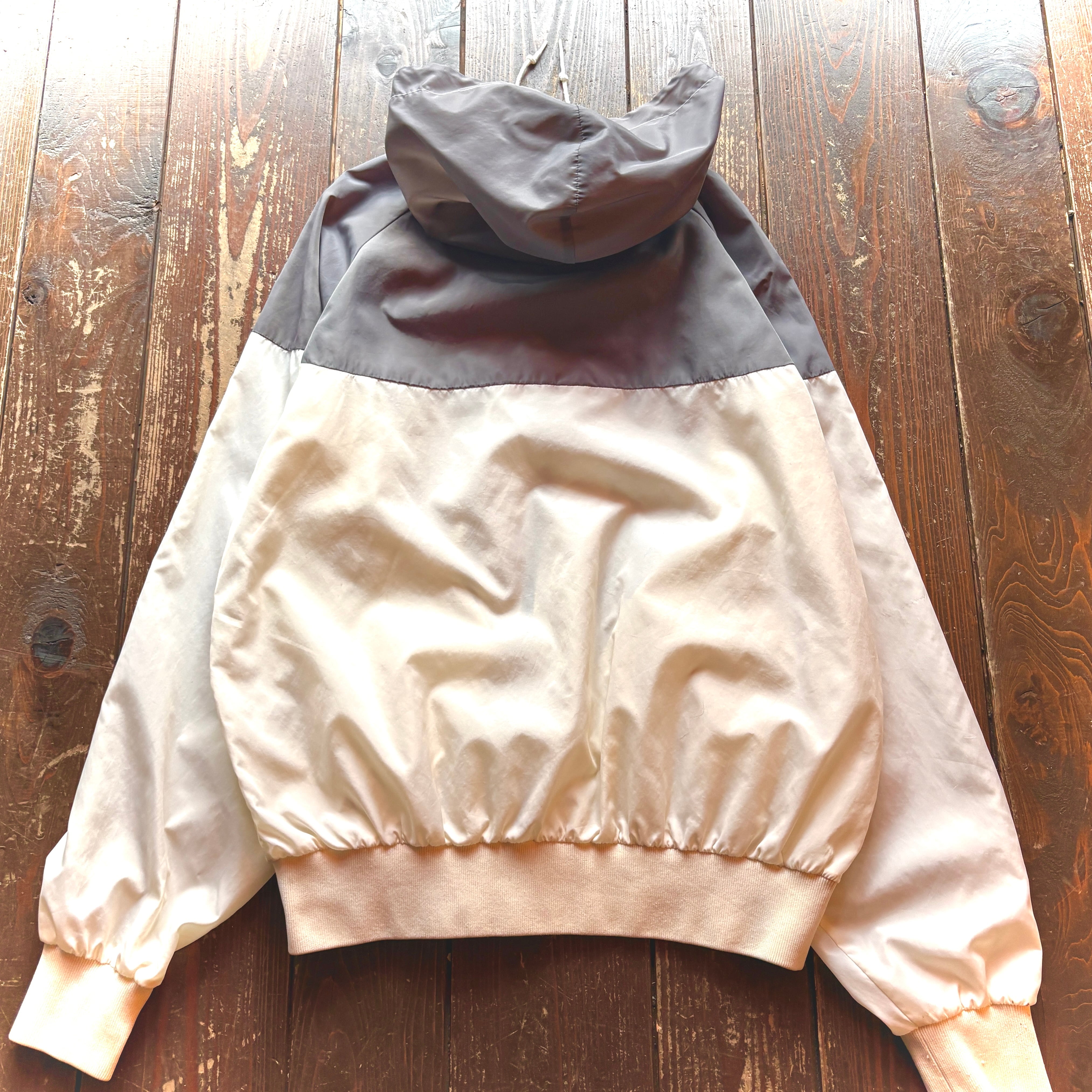 80's NIKE - Navy Tag - Nylon Hoodie Jacket Color Gray × White / Size LARGE