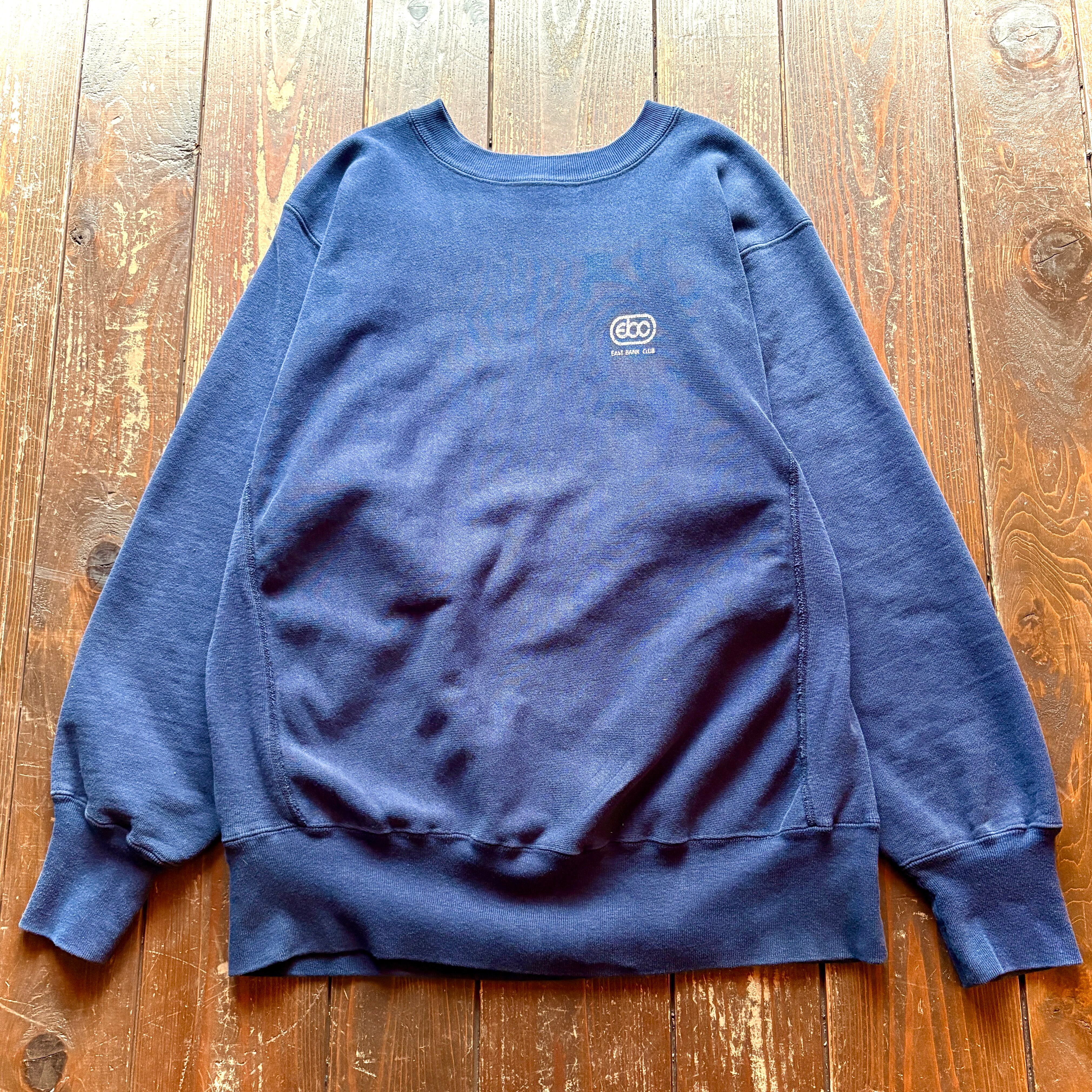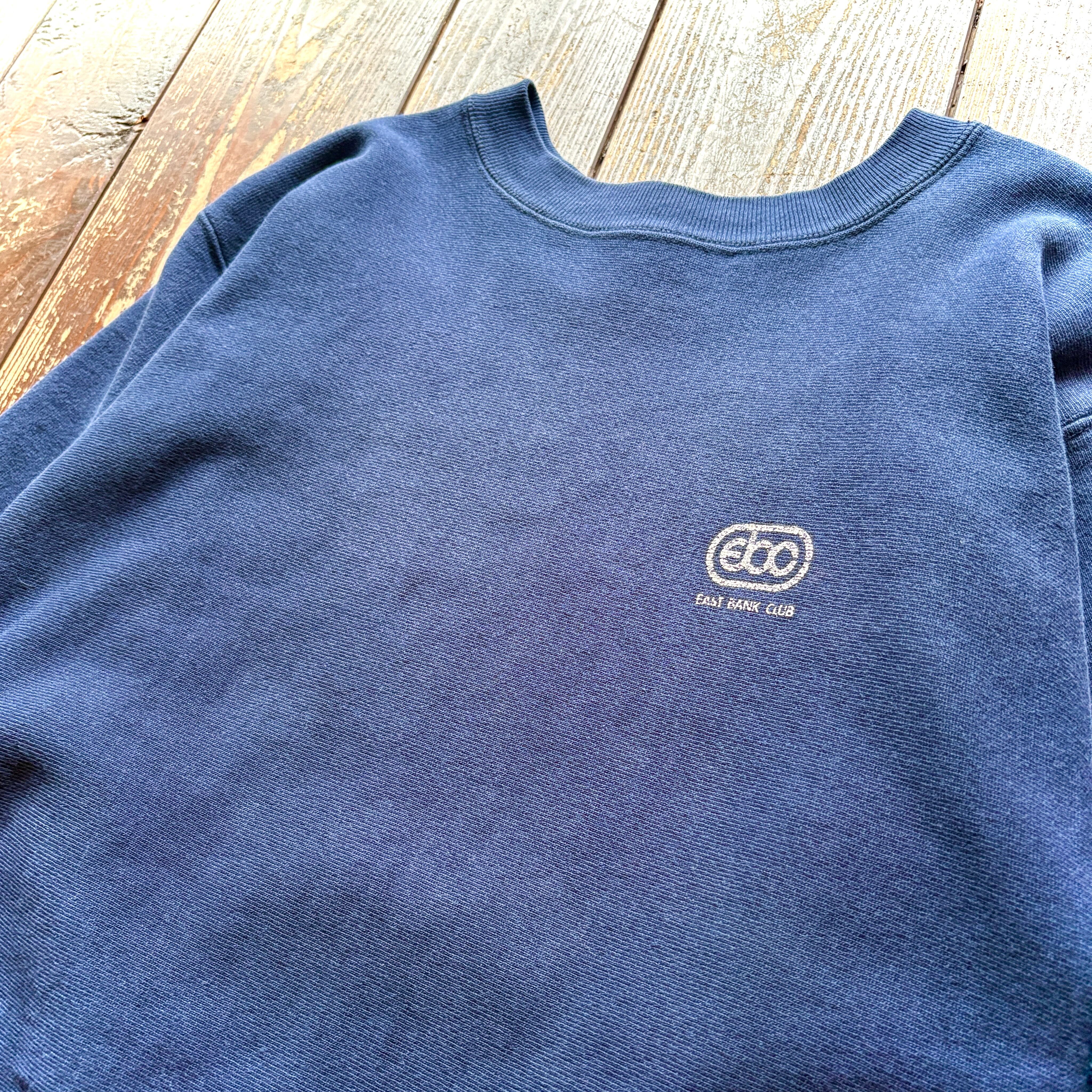 80's Champion - REVERSE WEAVE - 〝 EAST BANK CLUB 〟 Eyeless NAVY One point Print - MADE IN U.S.A - / Size LARGE