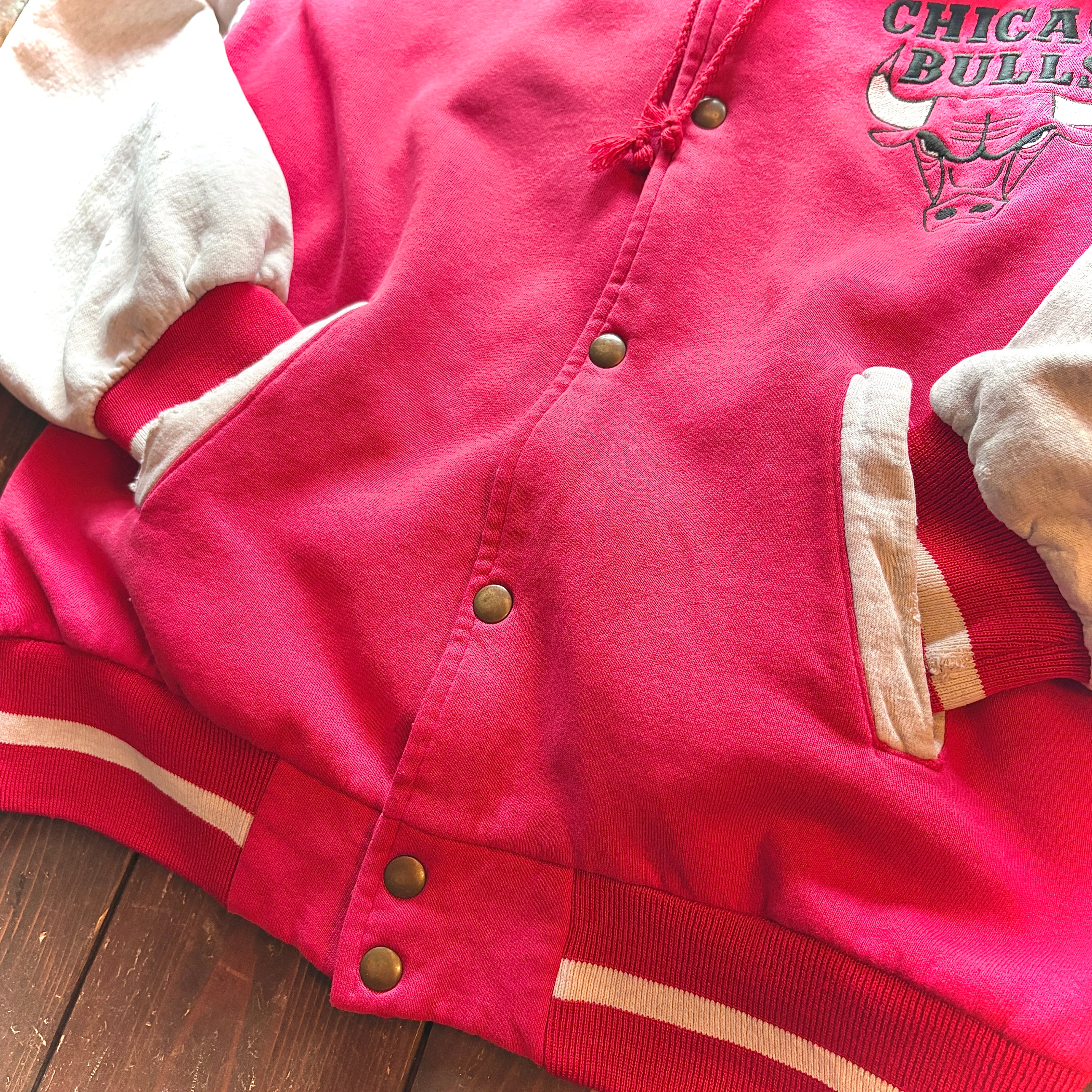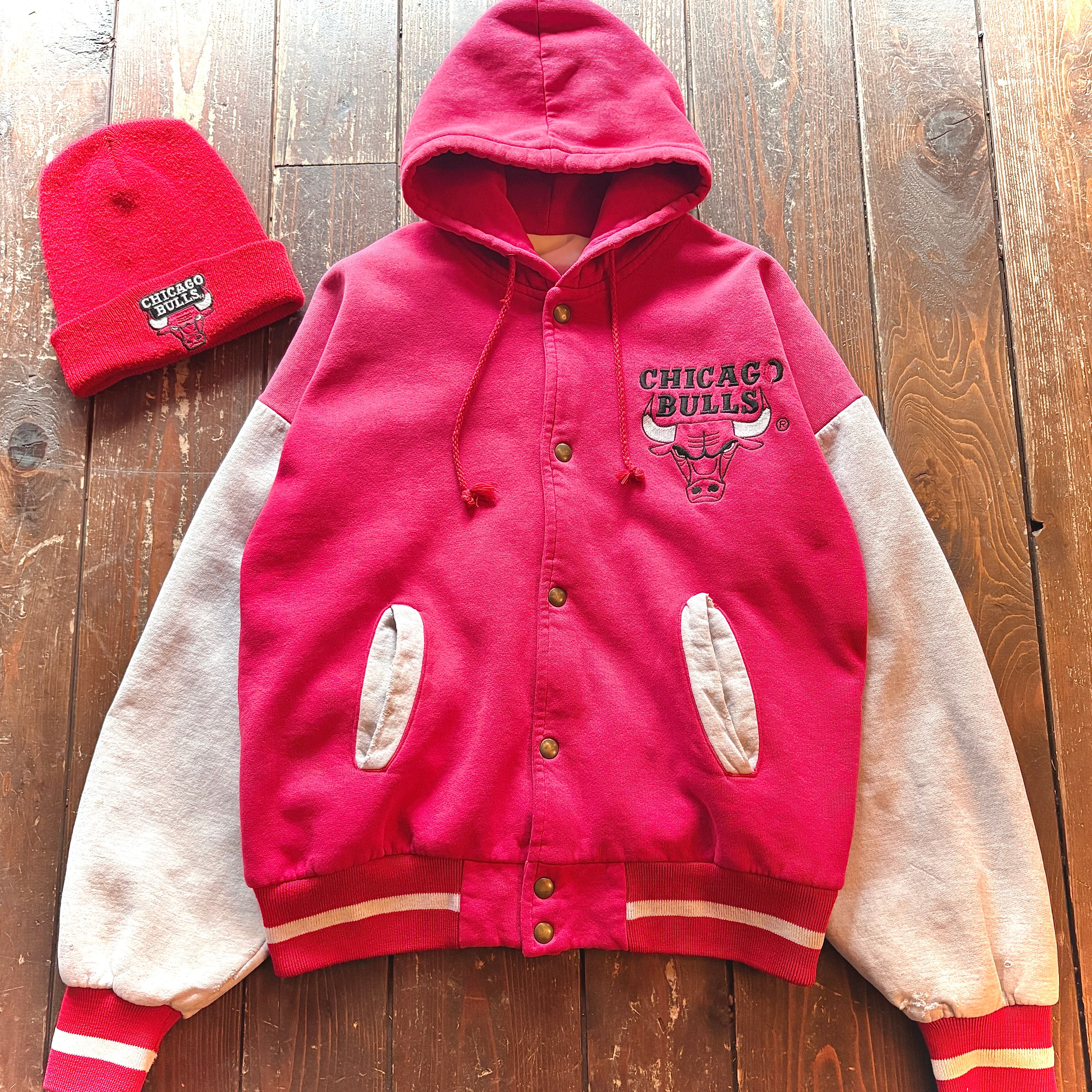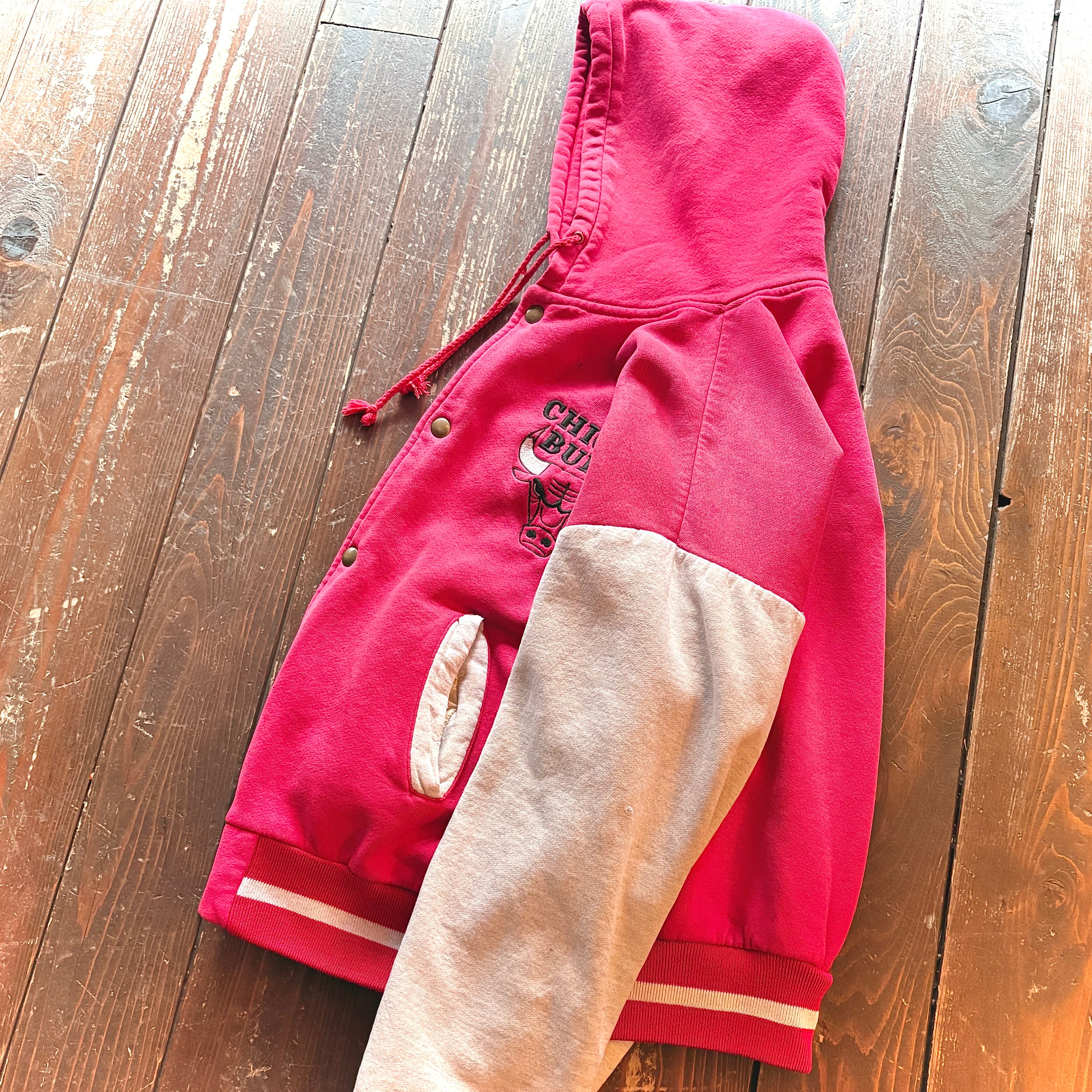 90's CHICAGO BULLS Snap Sweat Hoodie Jacket / Size About MEDIUM