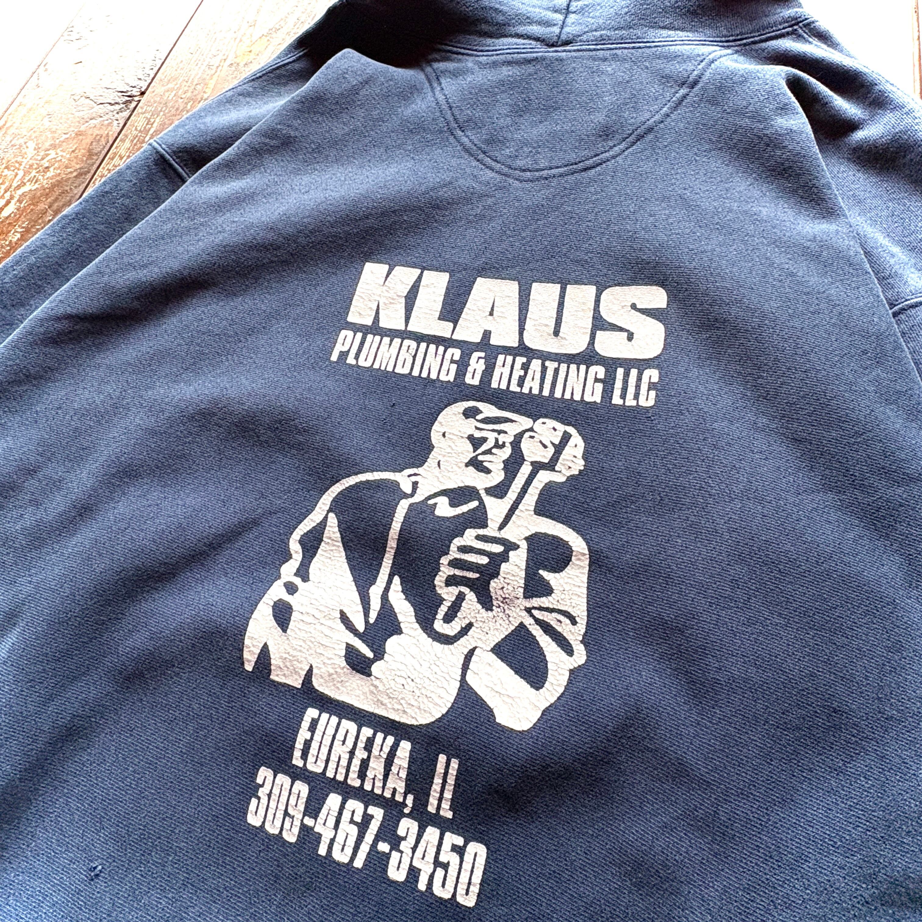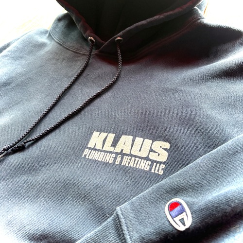 00's Champion PREMIUM REVERSE WEAVE 〝 KLAUS PUMBING & HEATING LLC〟 Two Side Company Print / Size X-LARGE
