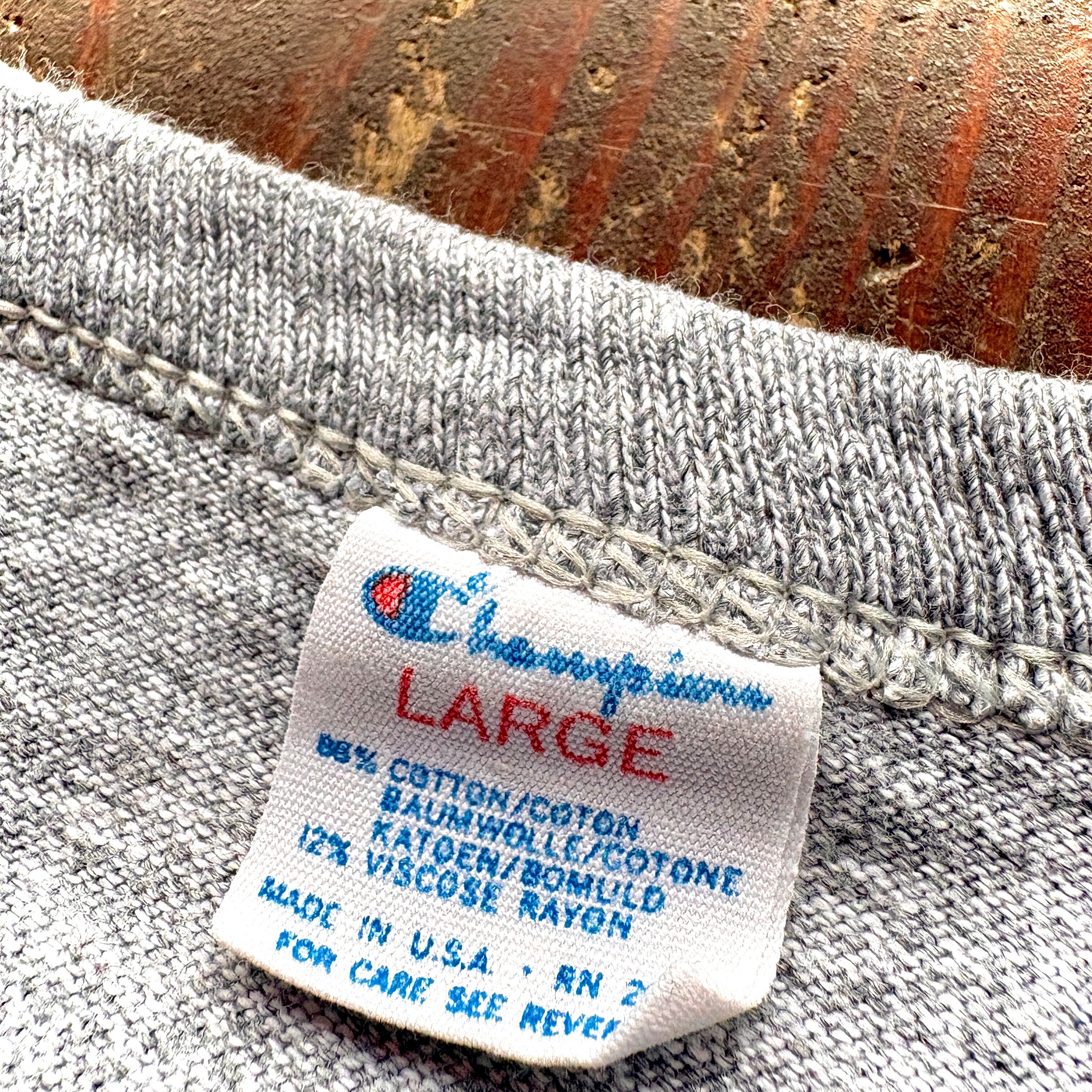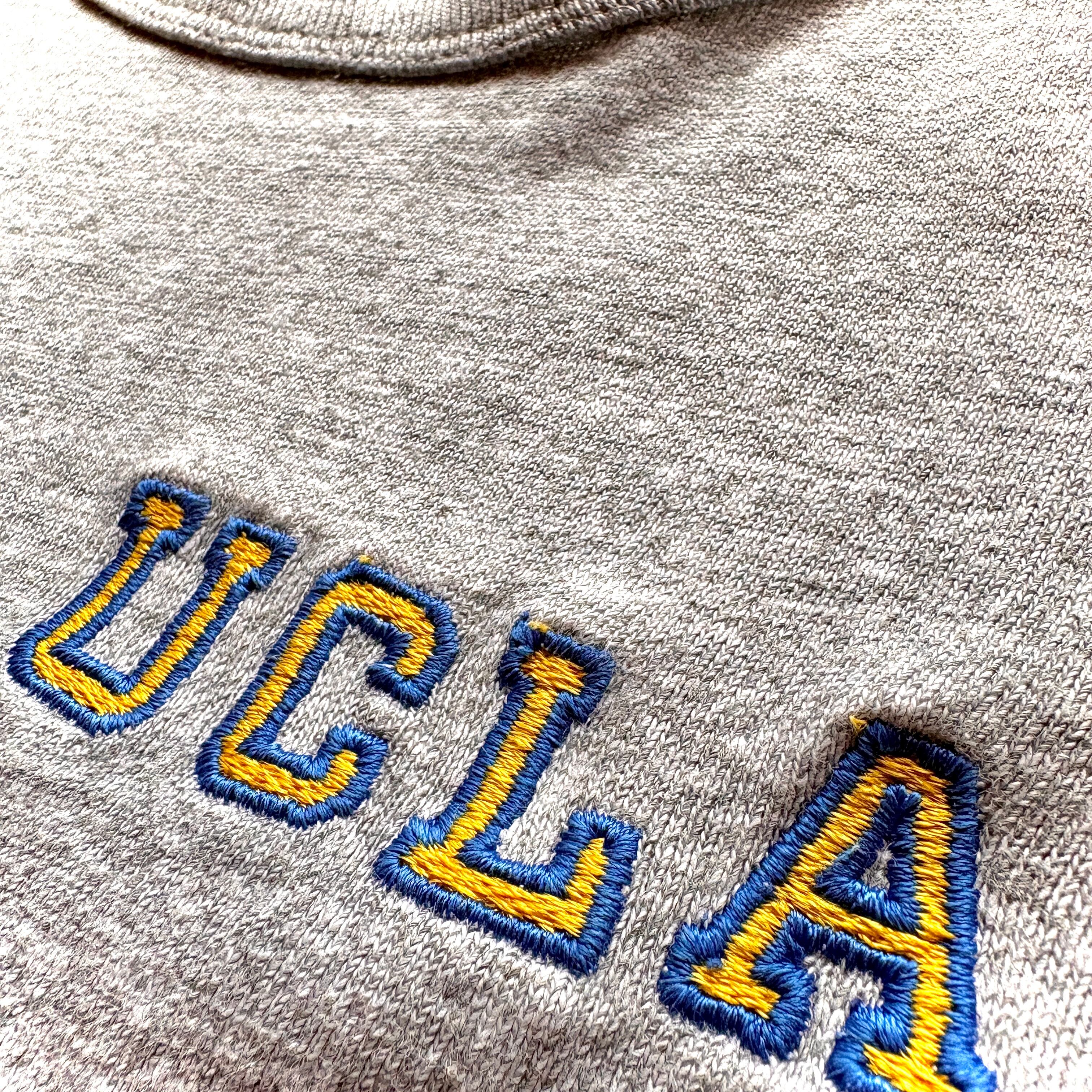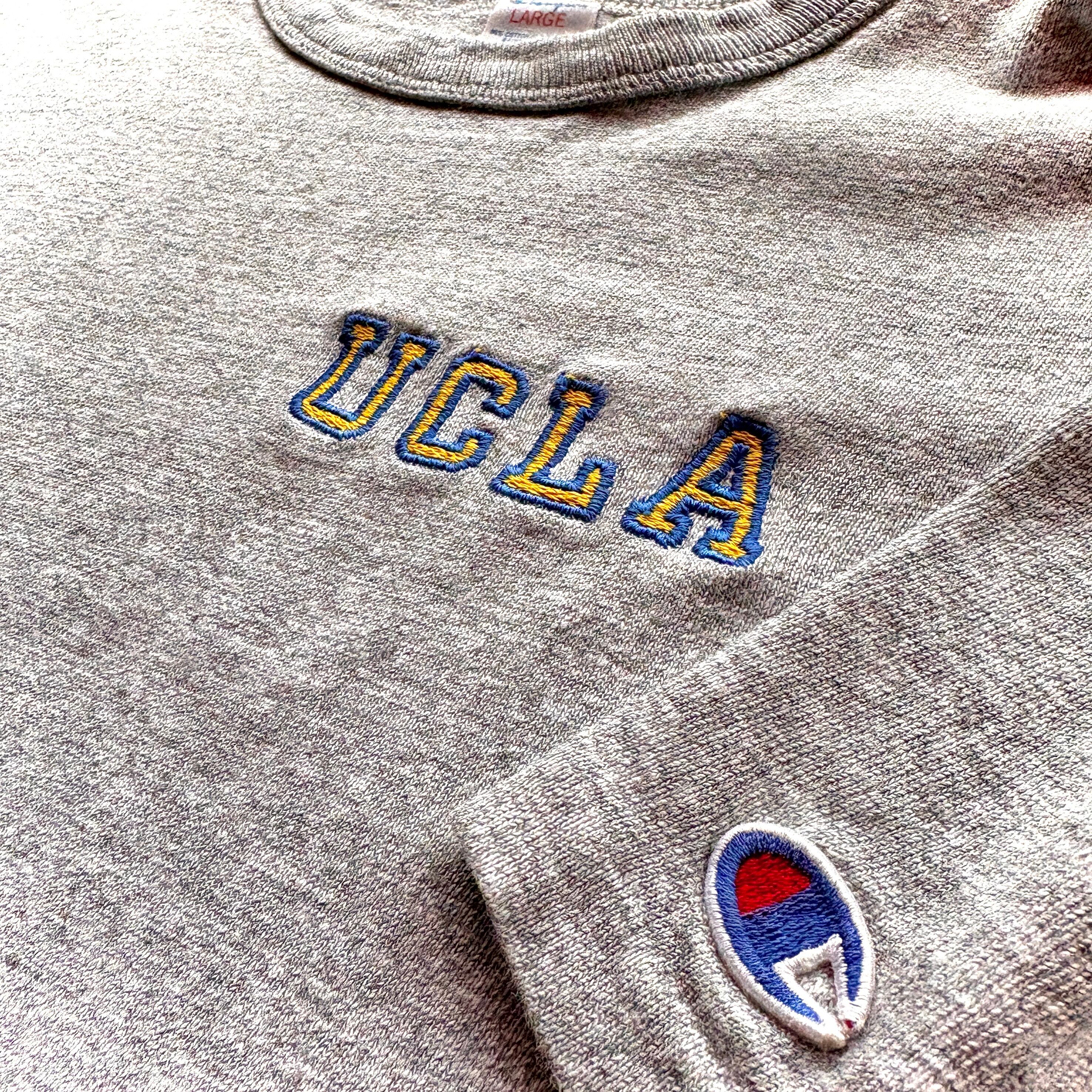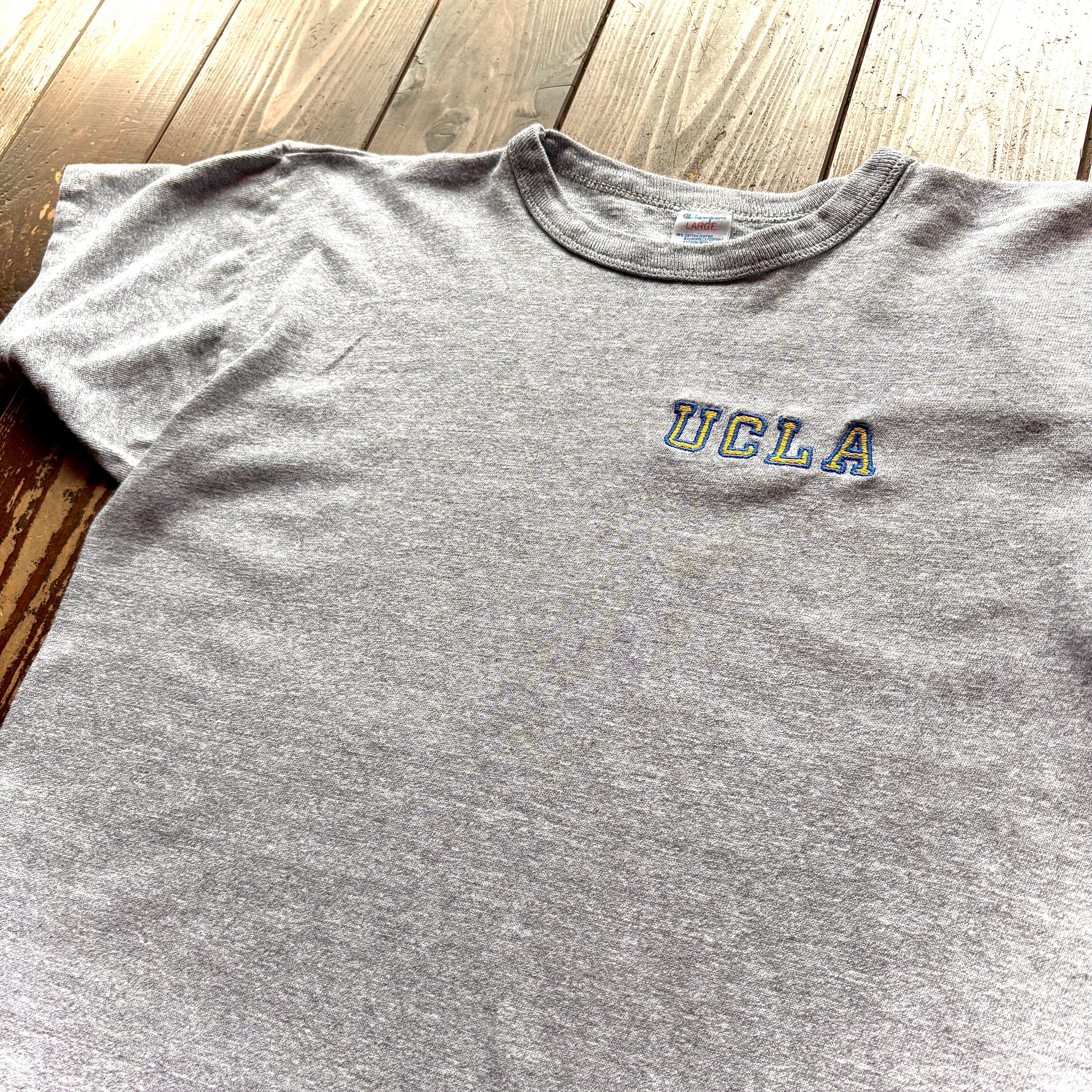 80's Champion - Tricoloretag - 88%cotton One point 〝UCLA〟Embroidery Single Stitch Sleeve T-Shirt - MADE IN U.S.A - / Size LARGE