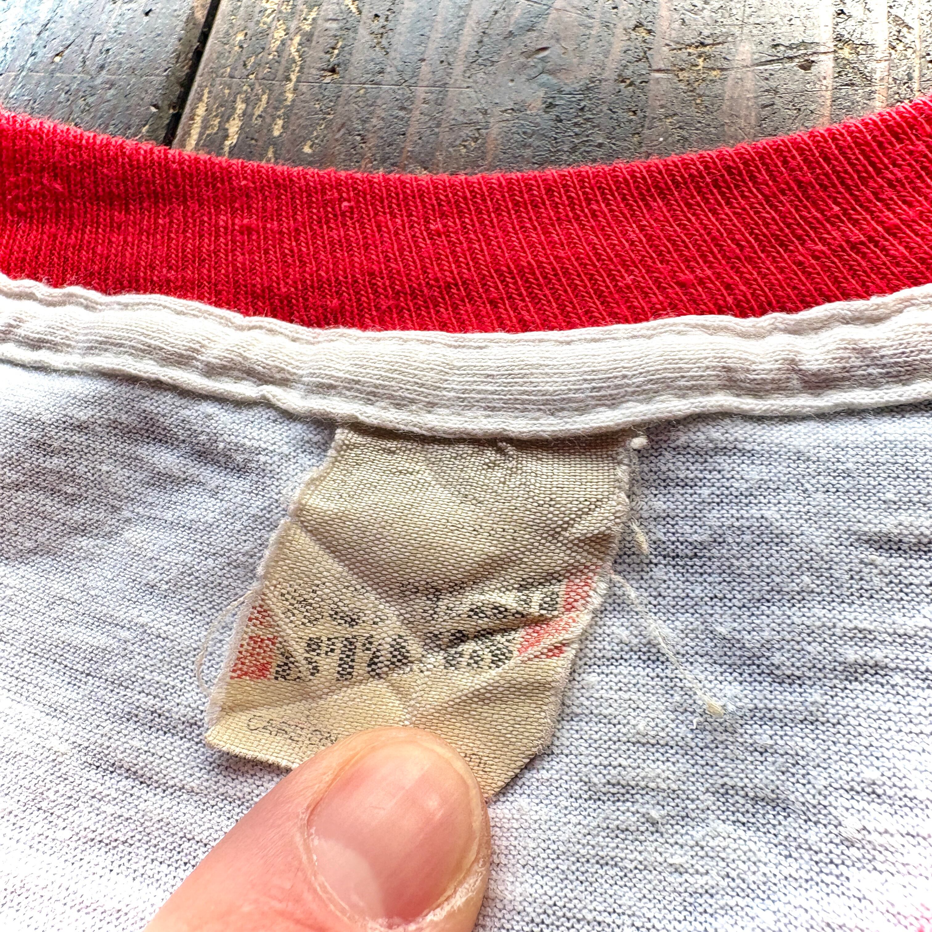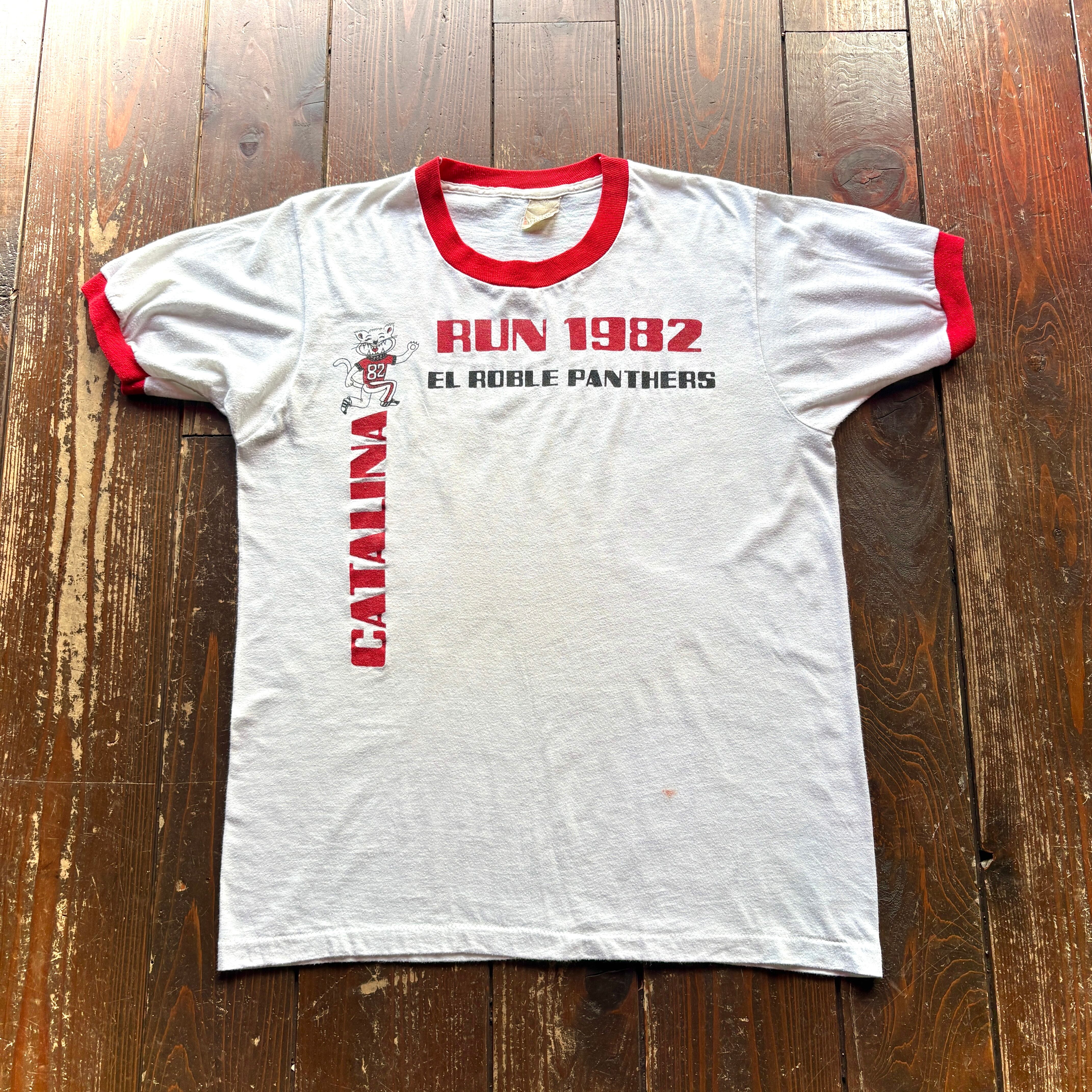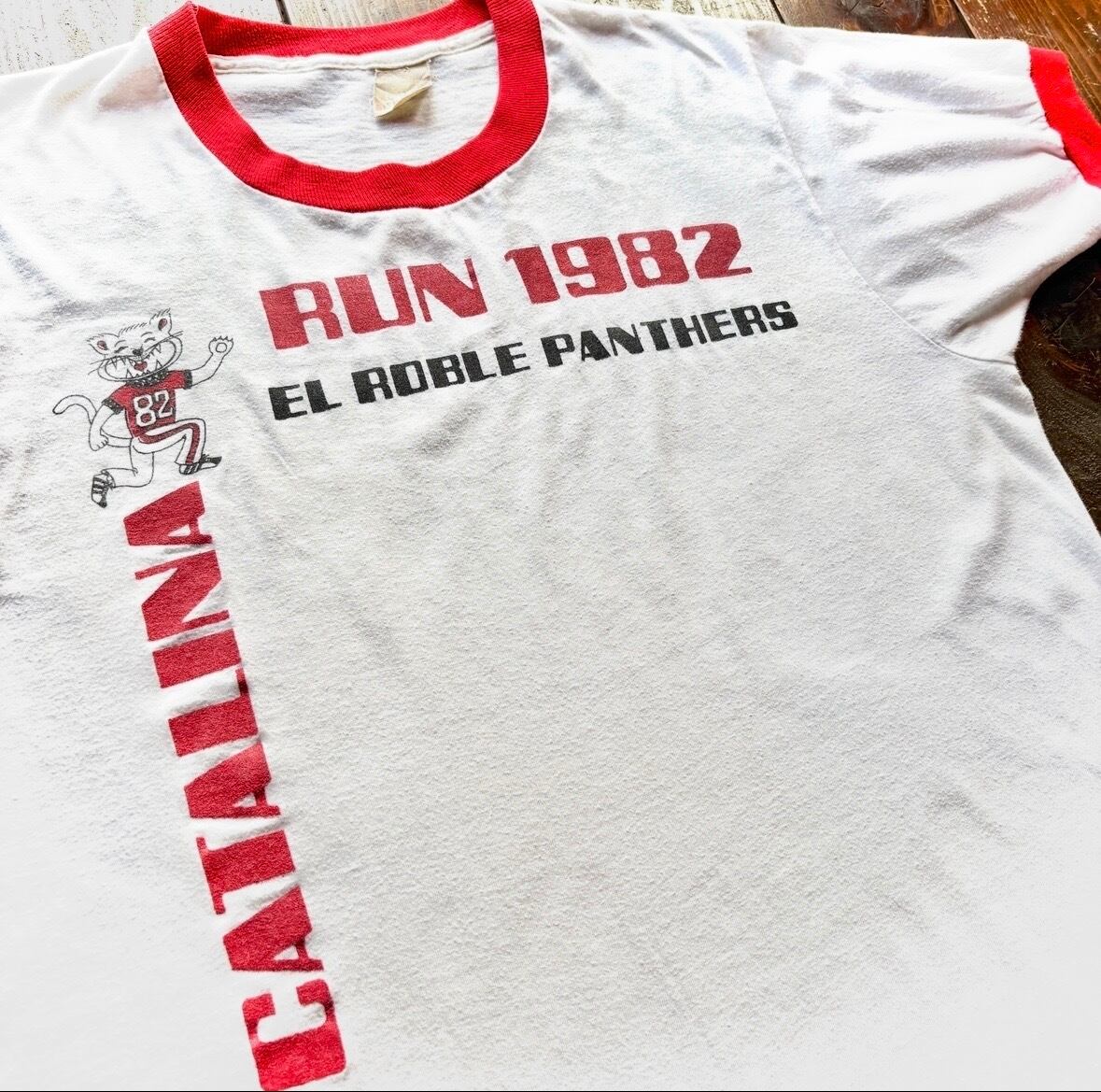 80's SCREEN STARS From California High school 〝EL ROBLE EL PHANTHERS〟 INK Print Ringer T-Shirt - MADE IN U.S.A - / Size About SMALL
