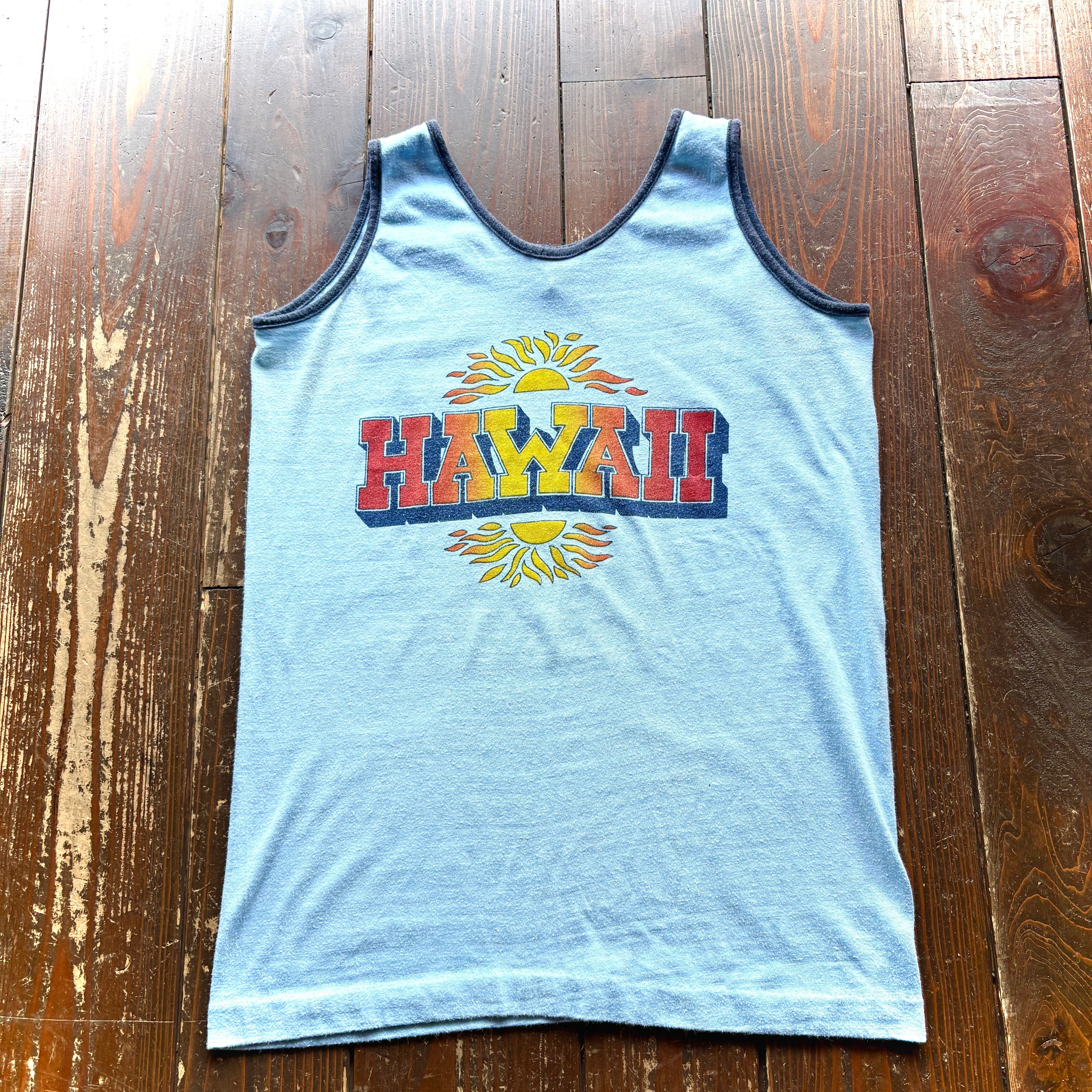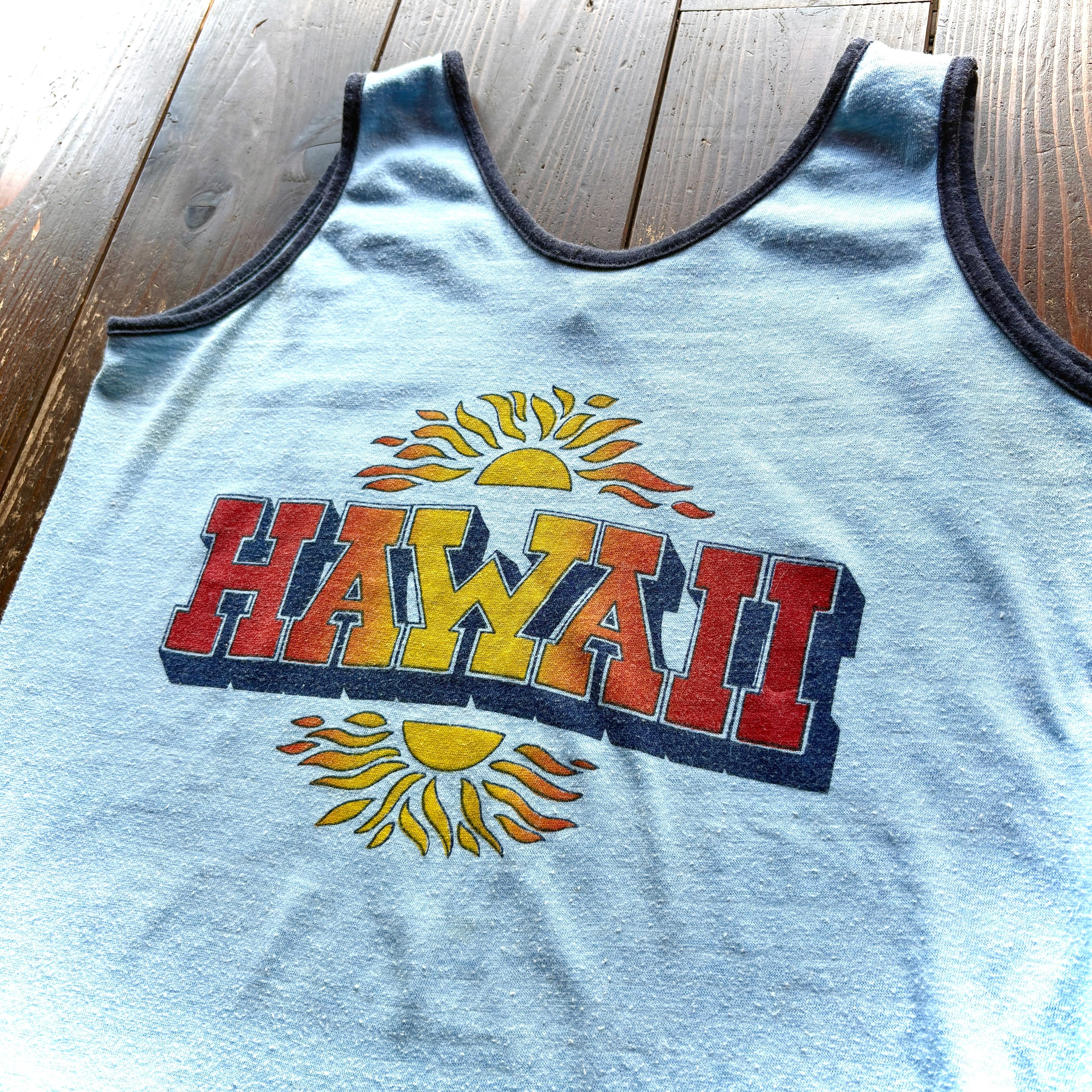 70's HAWAII INK Print Souvenir TUNK TOP Cotton × Polyester Sport Wear Quality Knit Body / Size MEDIUM