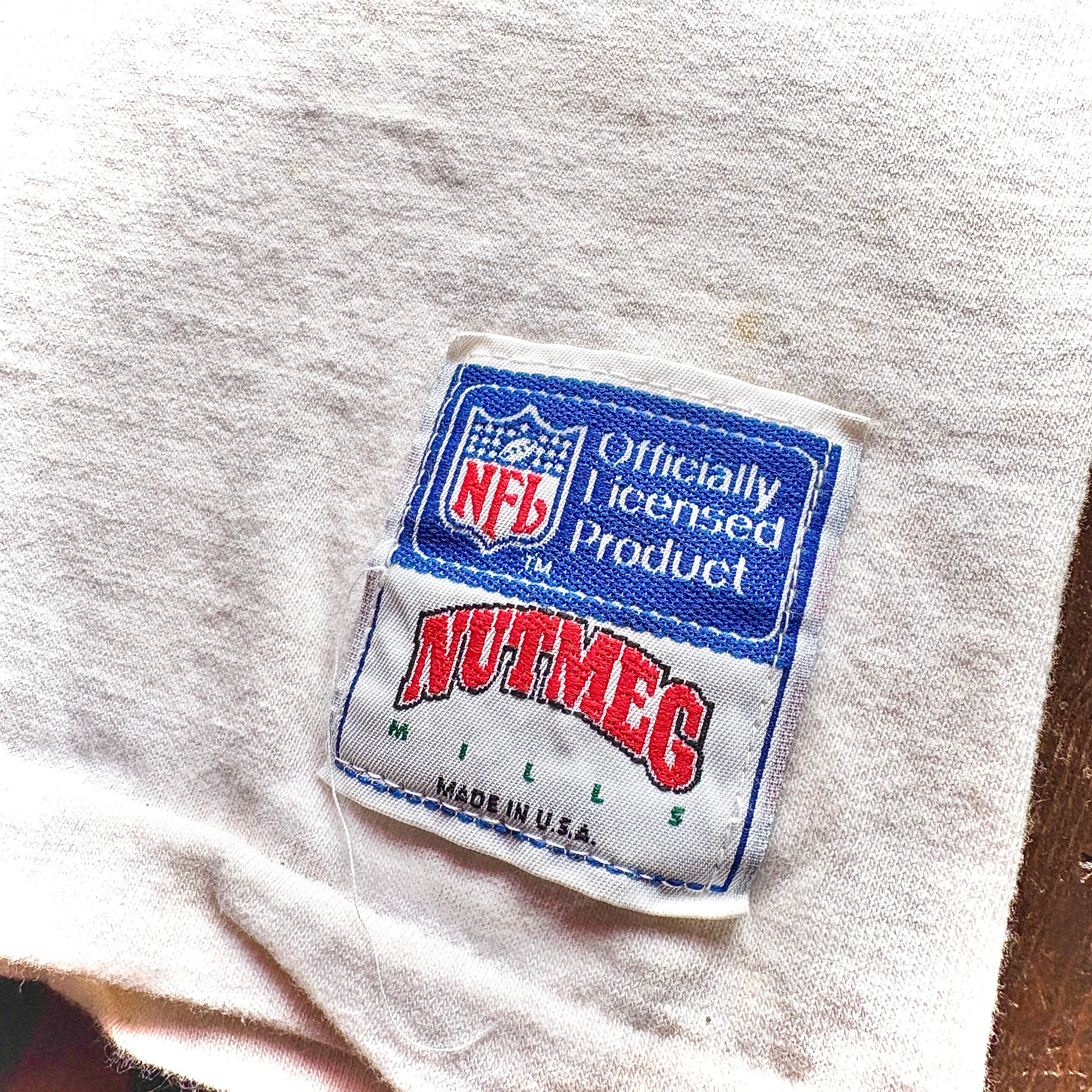 90's NUTMEG〝 NEW YORK GIANTS × PEANUTS 〟INK Print Single Stitch Sleeve Raglan T-Shirt Body NUTMEG - MADE IN U.S.A - / Size X-LARGE