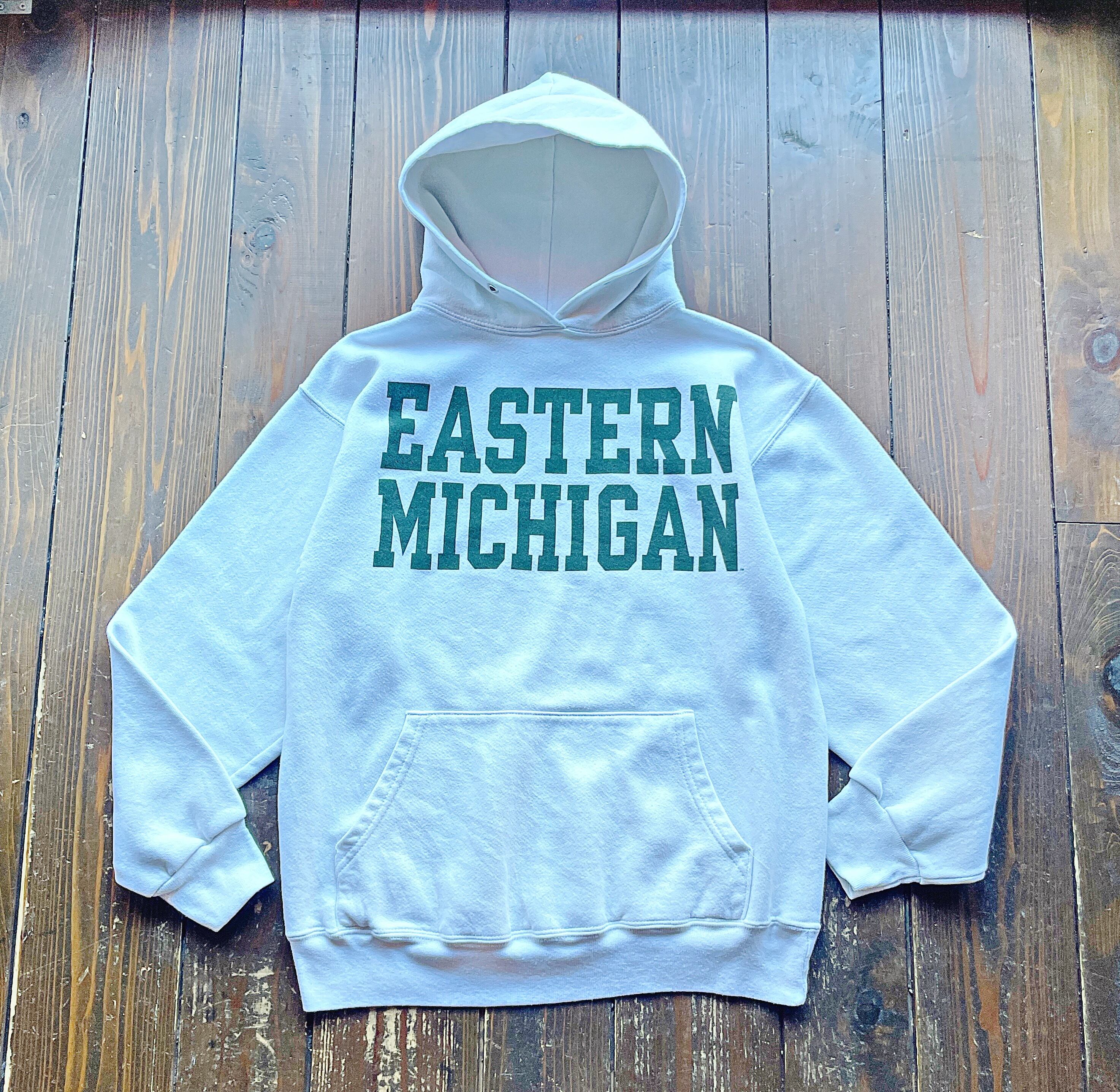 80s 〝EASTERN MICHIGAN〟INK Print Sweat Hoodie〈CottonExchange Body・ Made in U.S.A〉 / Size MEDIUM